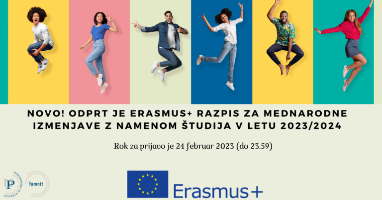 NOVO! Odprt je ERASMUS+ razpis za mednarodne izmenjave z namenom študija v letu 2023/202426 januarja, 2023