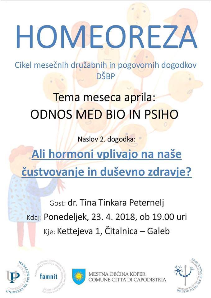Vabilo na predavanje dr. Tine Tinkare Peternelj »Ali hormoni vplivajo na naše čustvovanje in duševno zdravje?«18 aprila, 2018