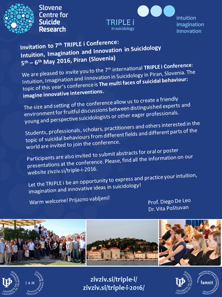 Vabljeni na 7. konferenco TRIPLE I: Intuition, Imagination and Innovation in Suicidology31 marca, 2016