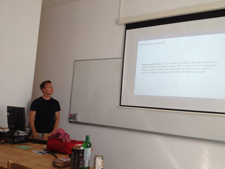2015-05-25 10:00-11:00 FAMNIT-POSTA Matija Vidmar (University of Ljubljana) On the informational structure in optimal dynamic stochastic control We formulate a massively general framework for optimal dynamic stochastic control problems which allows for a control-dependent informational structure. The issue of informational…