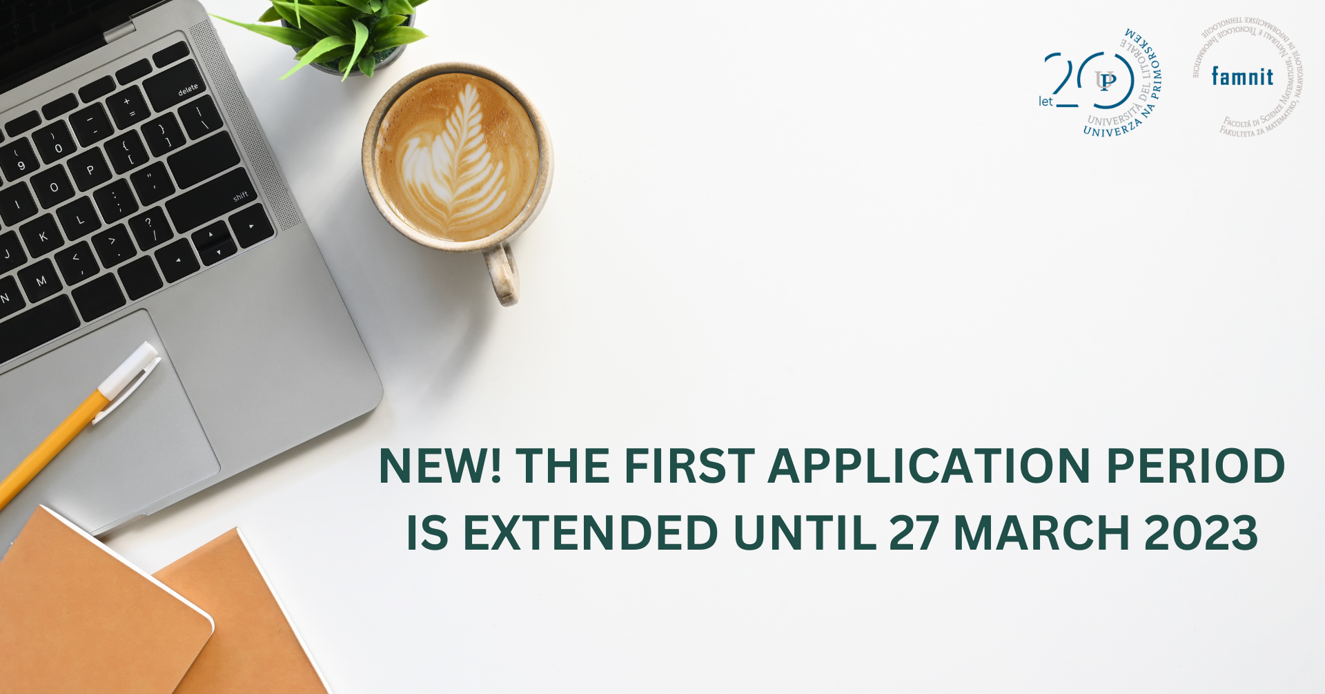 In accordance with the minister’s decision, the first round application period for enrolment in the first year of undergraduate and second-cycle integrated master’s degree programmes for Slovenian citizens, citizens of EU Member countries and Slovenians without Slovenian citizenship at public higher education institutions and independent higher education institutions carrying out study programmes under a concesion in the academic year 2023/2024 is extended until 27 March 2023 (extended by one week).