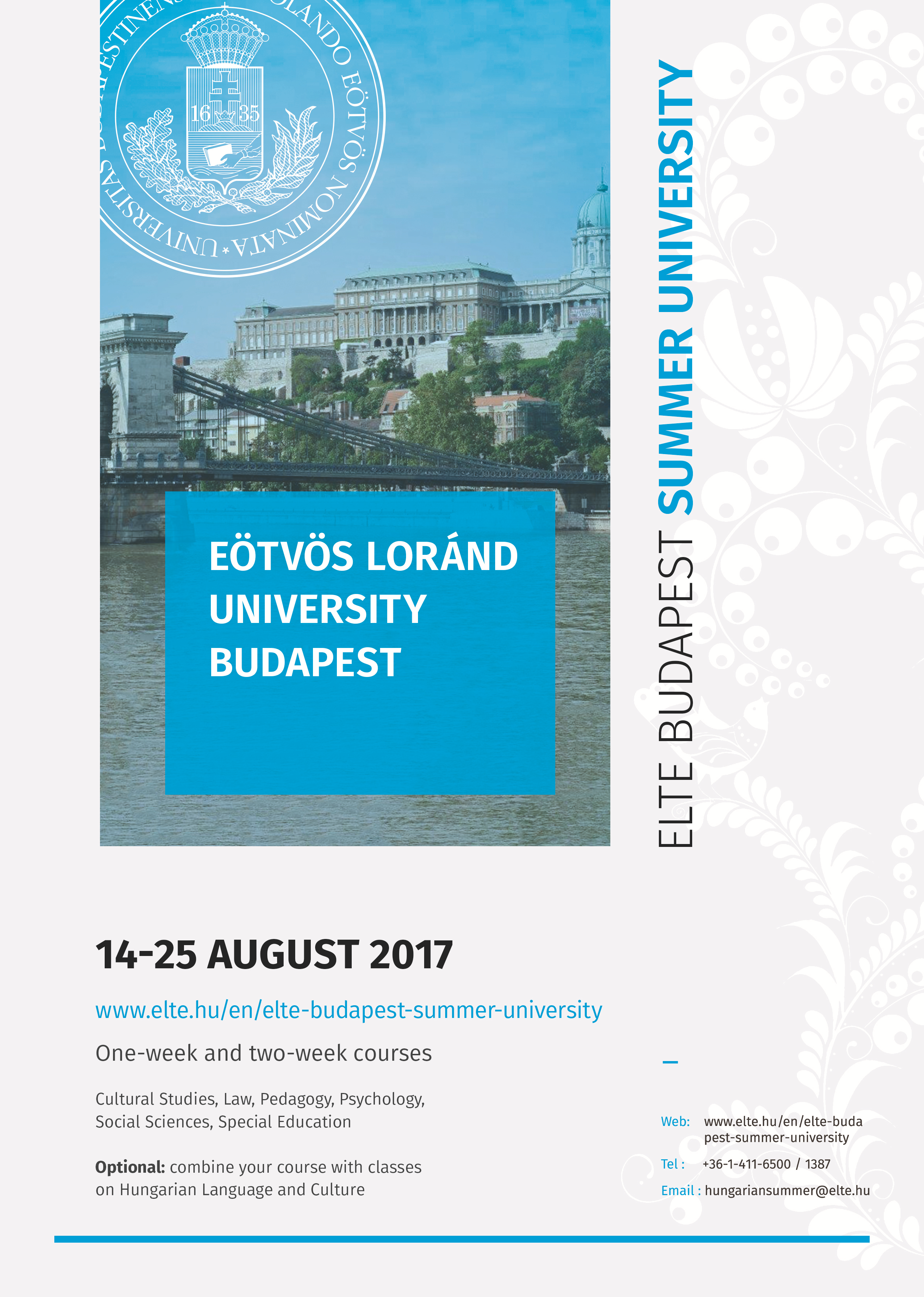 Eötvös Loránd University organizira ELTE Budapest Summer University 2017, ki bo potekala med 14. in 25. avgustom v Budimpešti.