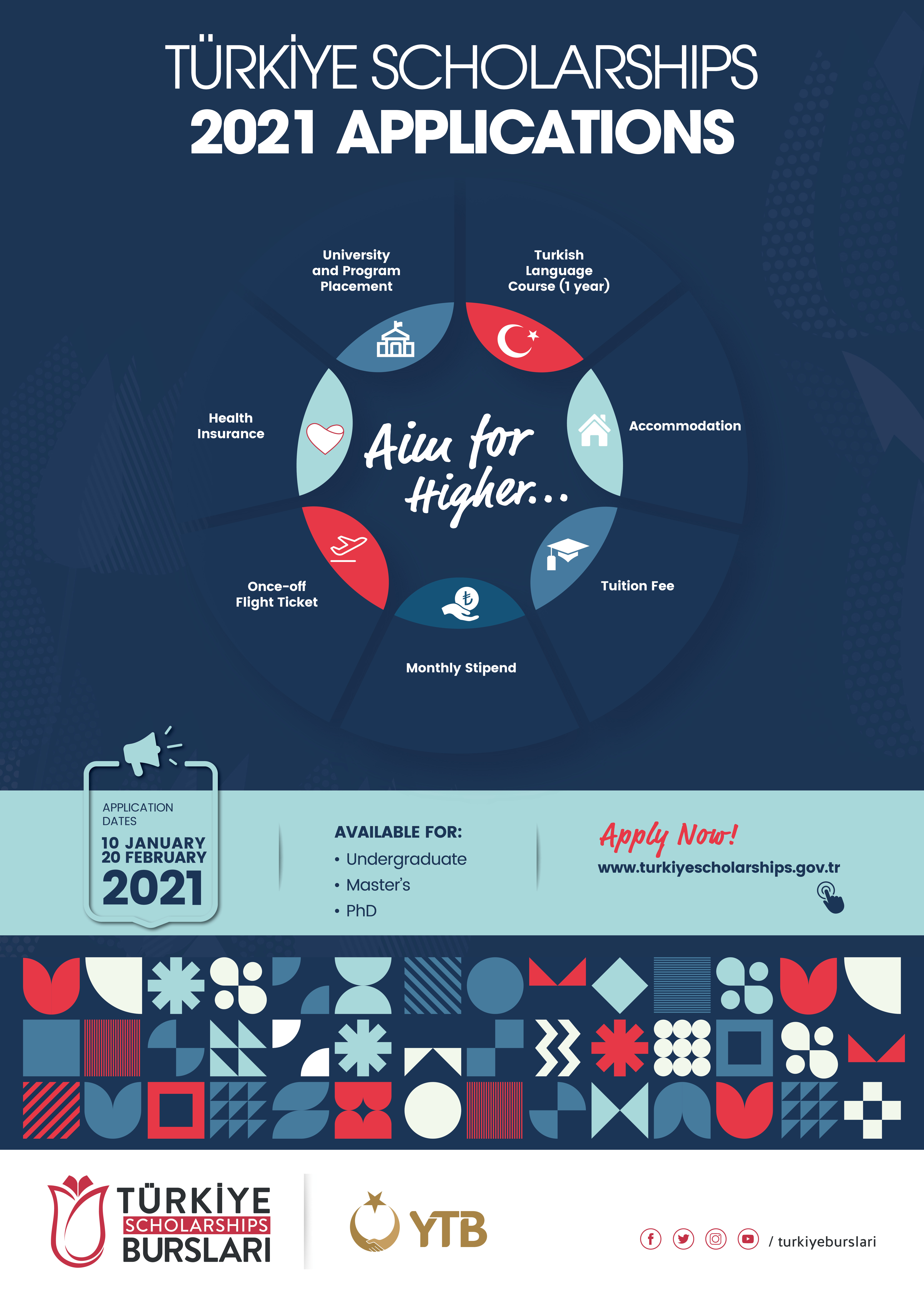More information is available on the website: https://www.turkiyeburslari.gov.tr/