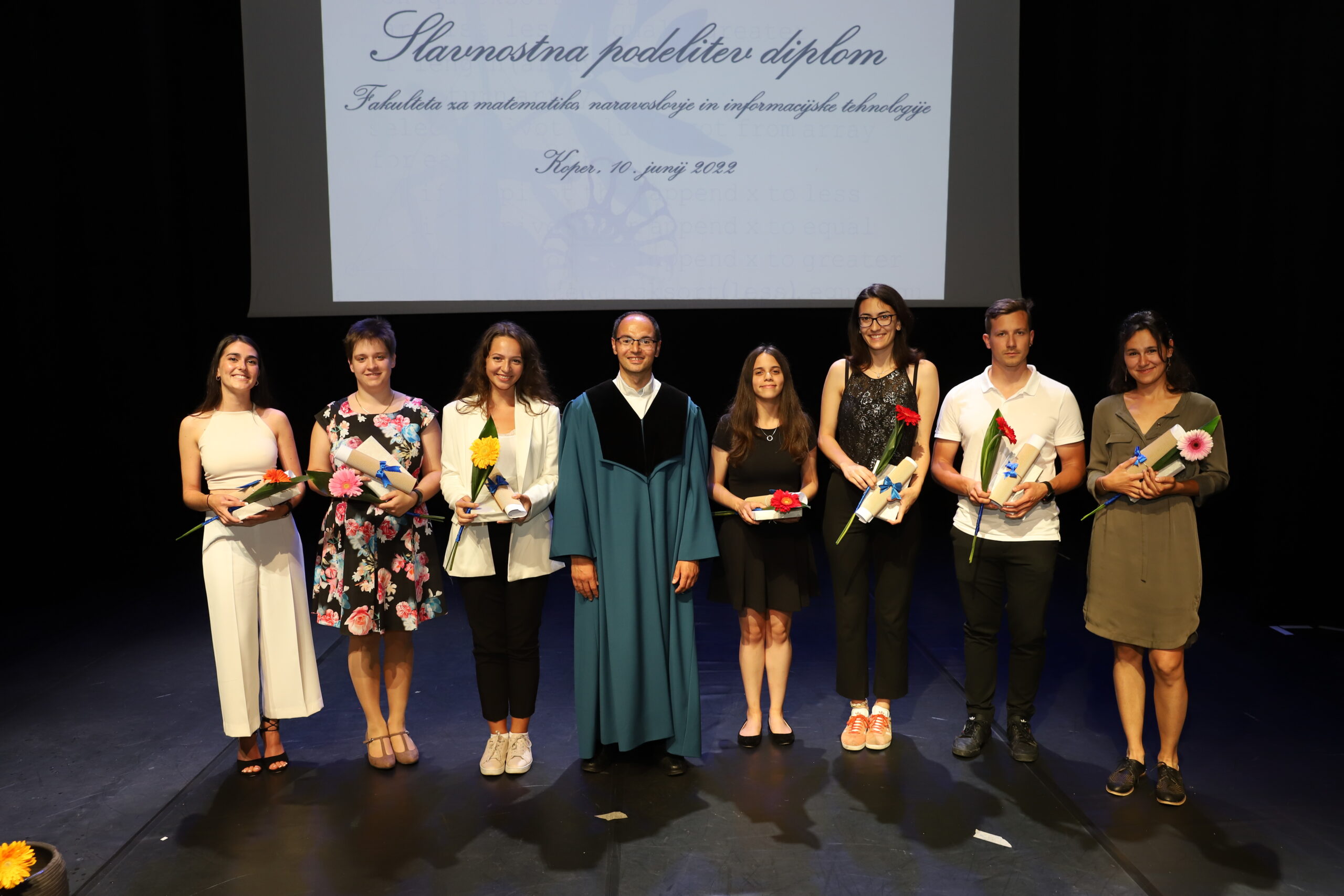 Danes, 10. junija, je v Gledališču Koper potekala 12. Slavnostna podelitev diplom UP FAMNIT. Novi diplomanti – teh je bilo letos 92 – bodo obogatili lokalno in širše okolje z novimi kakovostnimi kadri: diplomiranimi bioinformatiki, varstveni biologi, biopsihologi, matematiki, finančnimi matematiki, inženirji računalništva in informatike, inženirji kmetijstva ter magistri inženirji računalništva in informatike ter trajnostno grajenega okolja, magistri matematike, varstva narave, biopsihologije, psihologije, finančne matematike in podatkovne znanosti.