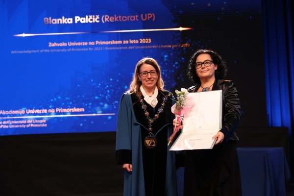 Na predlog Kolegija dekanov in direktorjev UP Zahvalo za sodelavce iz strokovnih služb UP za leto 2023 prejme Blanka Palčič za vestno delo in uspešno skrbništvo pomembnega projekta GDI UP.