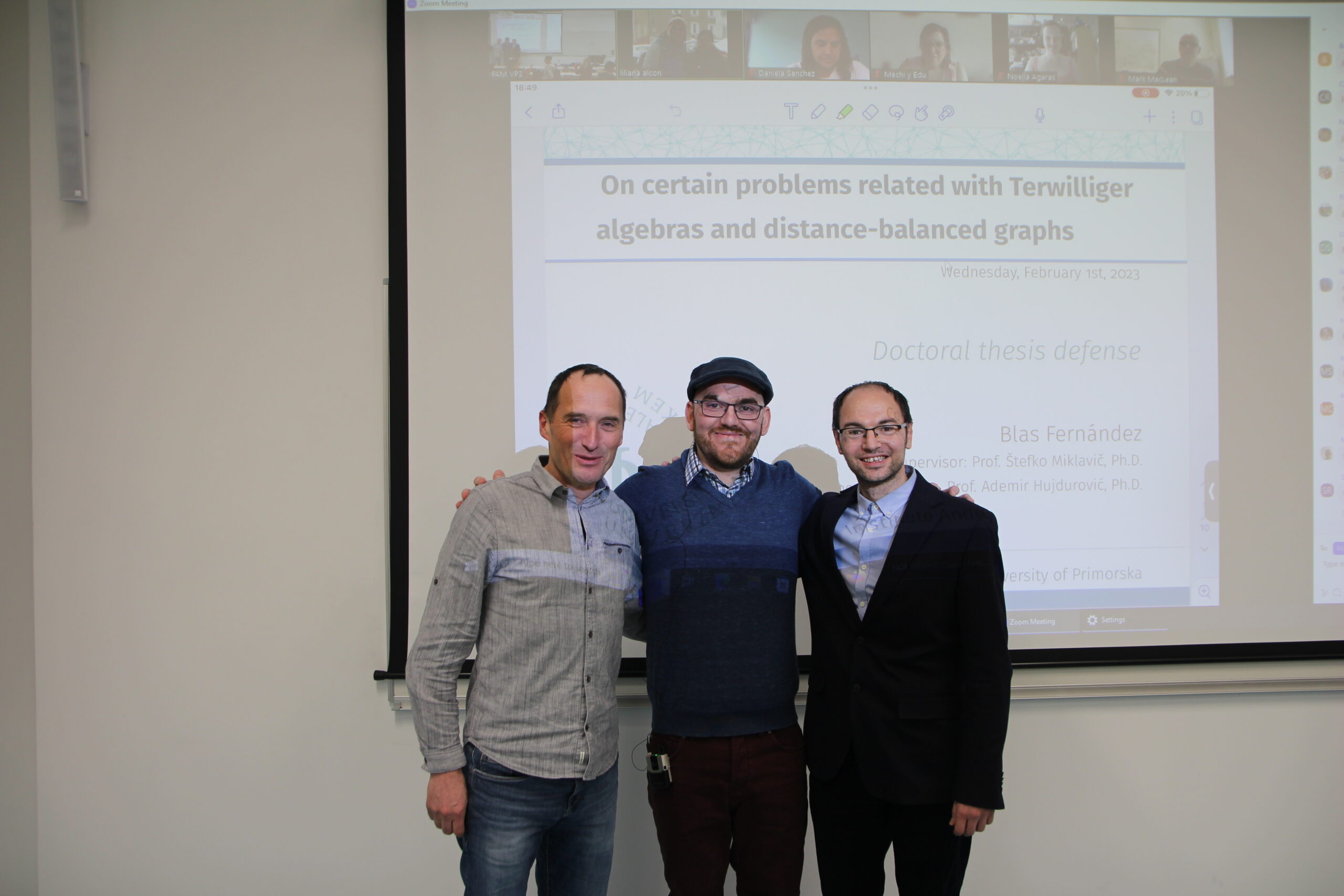 Blas Fernandez, študent doktorskega študijskega programa Matematične znanosti na Fakulteti za matematiko, naravoslovje in informacijske tehnologije (UP FAMNIT), je uspešno zagovarjal doktorsko disertacijo z naslovom On certain problems related to Terwilliger algebras and distance-balanced graphs, pod mentorstvom prof. dr. Štefka Miklaviča in somentorstvom izr. prof. dr. Ademirja Hujdurovića.
