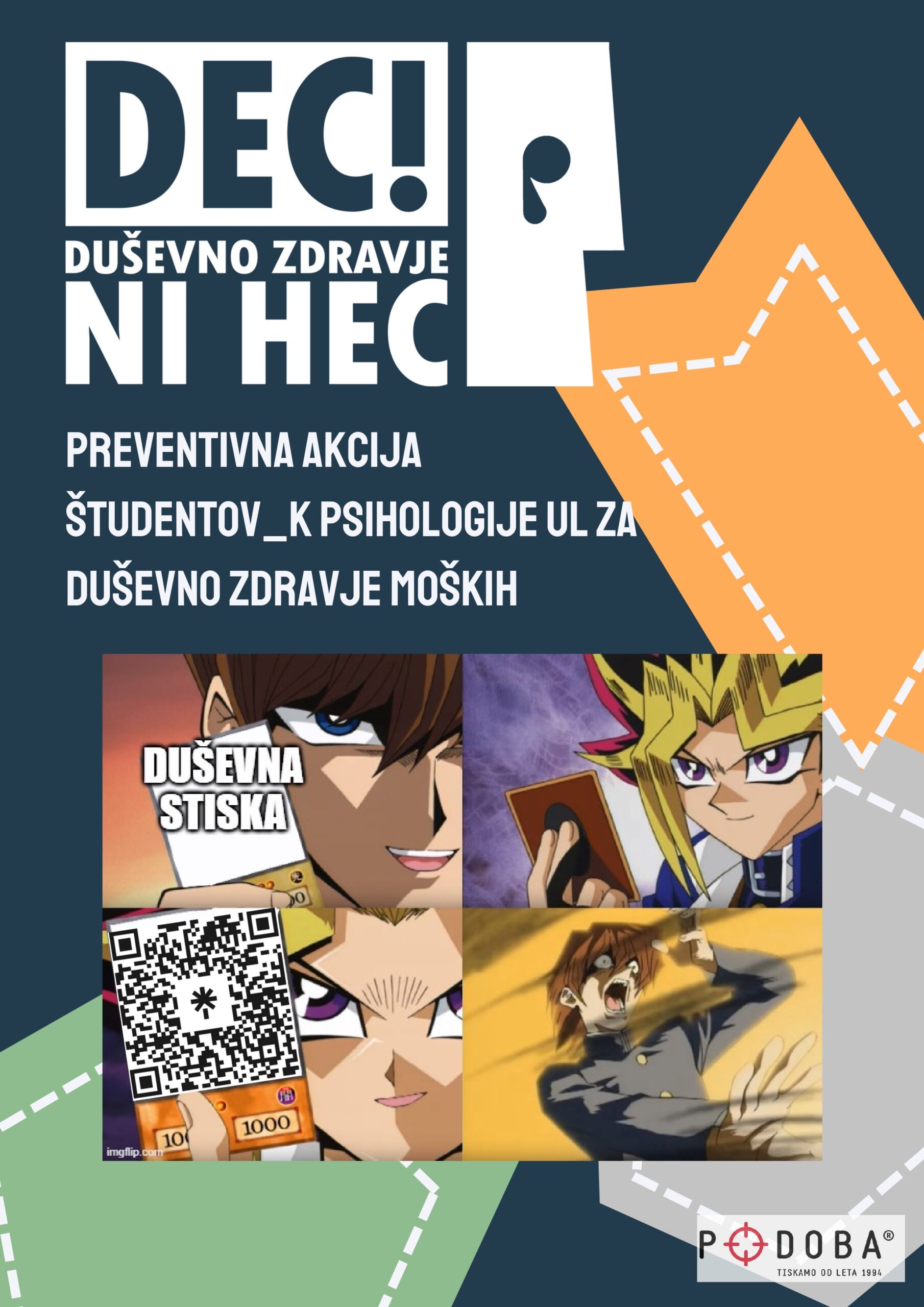 Poglavitni namen preventivne akcije Dec, duševno zdravje ni hec! je ozaveščanje moških o pomenu skrbi za lastno duševno zdravje, kar vključuje tudi spodbujanje iskanja potrebne psihološke pomoči, ko se stiska pojavi. Namreč zaradi načina socializacije, ki usmerja moškega, da minimalizira ali ignorira svoja čustva ter ohrani svojo neodvisnost in samozadostnost, se ti odločijo za iskanje strokovne pomoči manj pogosto in pozneje v primerjavi z ženskami oziroma šele ko težave postanejo prehude, da bi jih še naprej ignorirali. Trditev lahko podkrepimo s podatkom, da zgolj 13 odstotkov moških v obdobju med 16. in 24. letom starosti poišče psihološko pomoč, če doživlja duševne težave, kar je razlog, da je v tej starostni skupini samomor ena izmed najbolj pogostih oblik smrti.