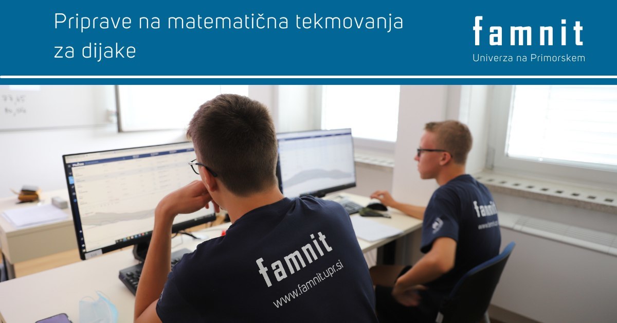 Oddelek za matematiko na UP FAMNIT organizira že tradicionalne priprave na matematična tekmovanja za dijakinje in dijake vseh letnikov. Priprave bodo potekale v treh terminih (z različnimi nalogami) in sicer v: