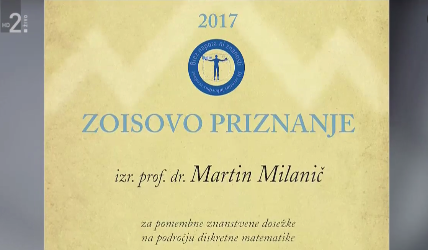 Z iskrenim veseljem sporočamo, da je izr. prof. dr. Martin Milanič prejel prestižno Zoisovo priznanje za pomembne znanstvene dosežke, in sicer za znanstvene dosežke na področju diskretne matematike.