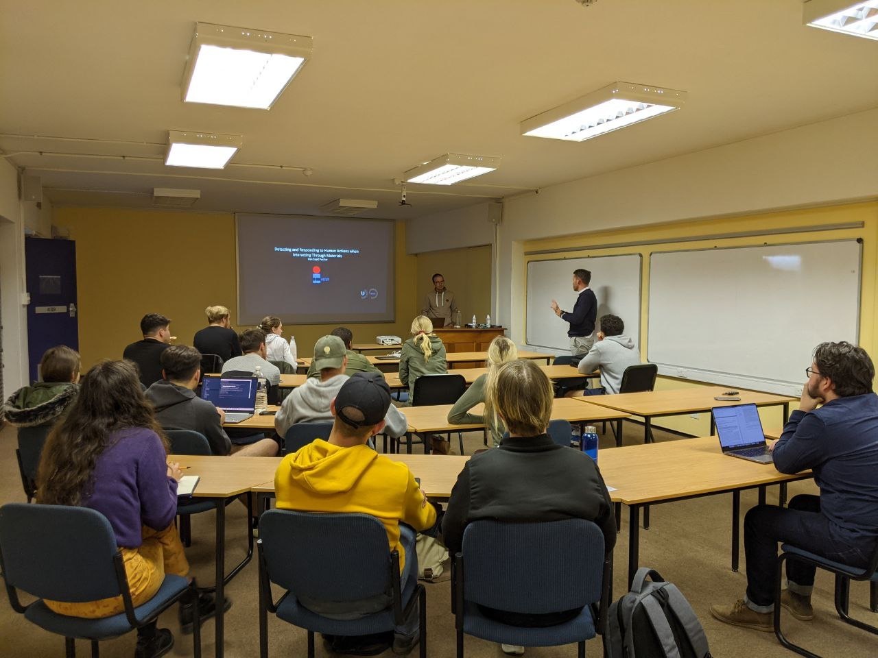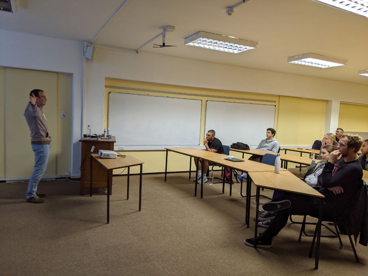 Izr. prof. Kljun in izr. prof. Čopič Pucihar sta v Stellenboschu magistrskim in doktorskim študentom predavala o izbranih temah s področja interakcije človek-računalnik in uporabi umetne inteligence pri podpori učenja jezikov v okolju dopolnjene resničnosti.