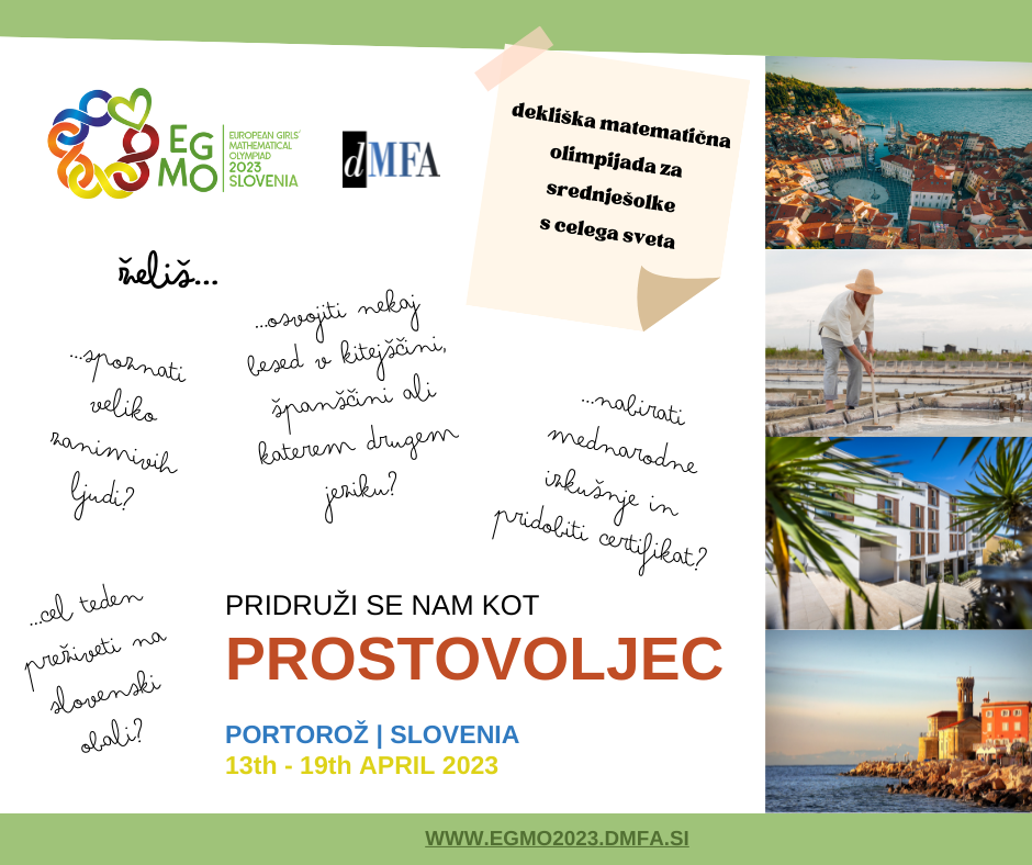 Med 13. In 19. aprilom 2023 bo Društvo matematikov, fizikov in astronomov Slovenija (DMFA Slovenije) gostilo to prestižno mednarodno tekmovanje v matematiki, ki od prvega tekmovanja (2012) promovira mlade znanstvenice, povečuje delež deklet v ekipah na Mednarodnih matematičnih olimpijadah (IMO), poleg tega pa podpira socialno, kulturno in interdisciplinarno izmenjavo med najstnicami širom sveta.