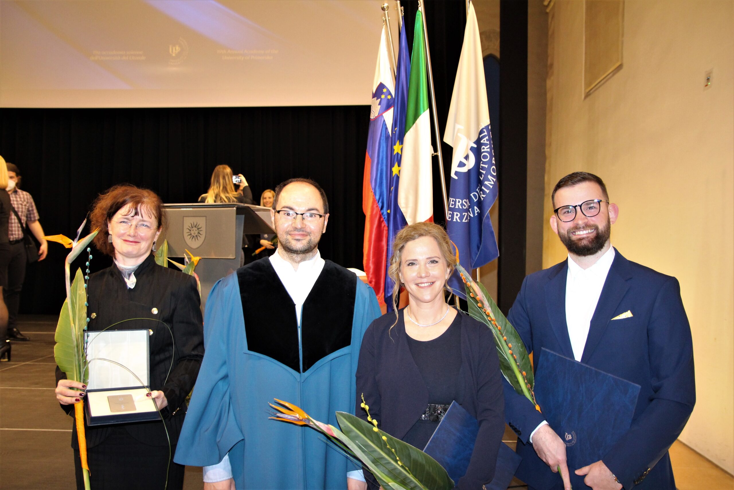 Rektorica je nato s prorektorjema in dekanjami ter dekani podarila nagrade Univerze na Primorskem, med njimi tudi zaposlenim in študentom UP FAMNIT.