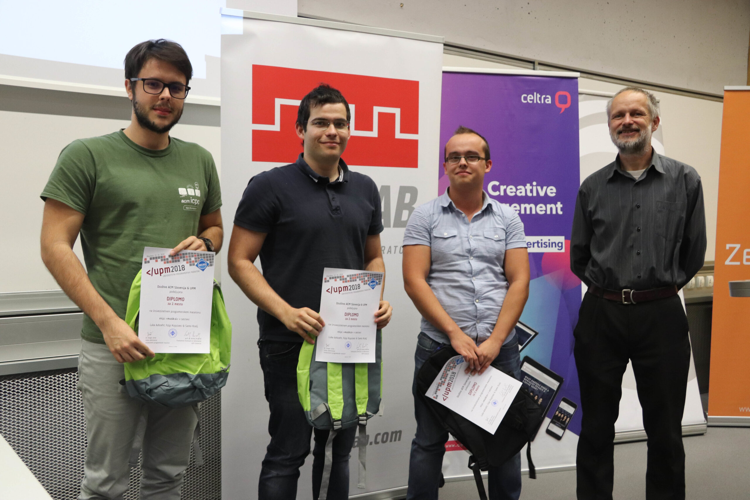 V soboto, 13. oktobra 2018, je v Mariboru potekalo finalno kolo Univerzitetnega programerskega maratona 2018. Zaključni dogodek je organiziral Inštitut za računalništvo, odvil pa se je v prostorih Fakultete za elektrotehniko, računalništvo in informatiko UM. Zadnje programerske bitke so se udeležile ekipe, ki so dosegle najboljše rezultate na prvih treh kolih. Zbralo se je tako 16 ekip oziroma 46 tekmovalcev.