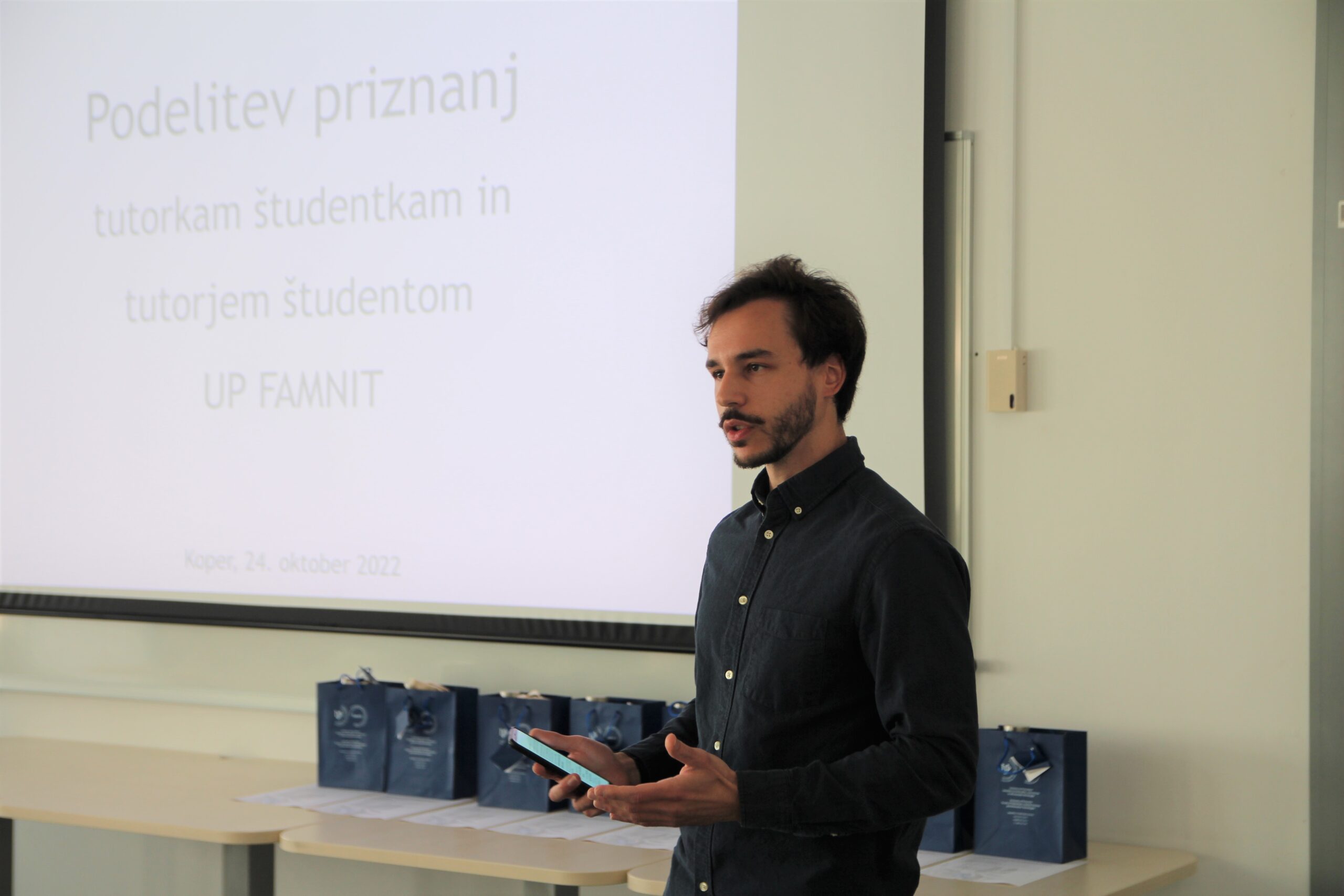 Med njimi je bil tudi študent Biopsihologije na 2. stopnji, Matija Zagoranski , ki je sicer tutor tudi v letošnjem študijskem letu, in je na podelitvi certifikatov v svojem govoru izpostavil prvo vlogo tutorjev ob prihodu bruck in brucev: »Za nove študente smo najboljši prijatelji preden spoznajo najboljše prijatelje.«