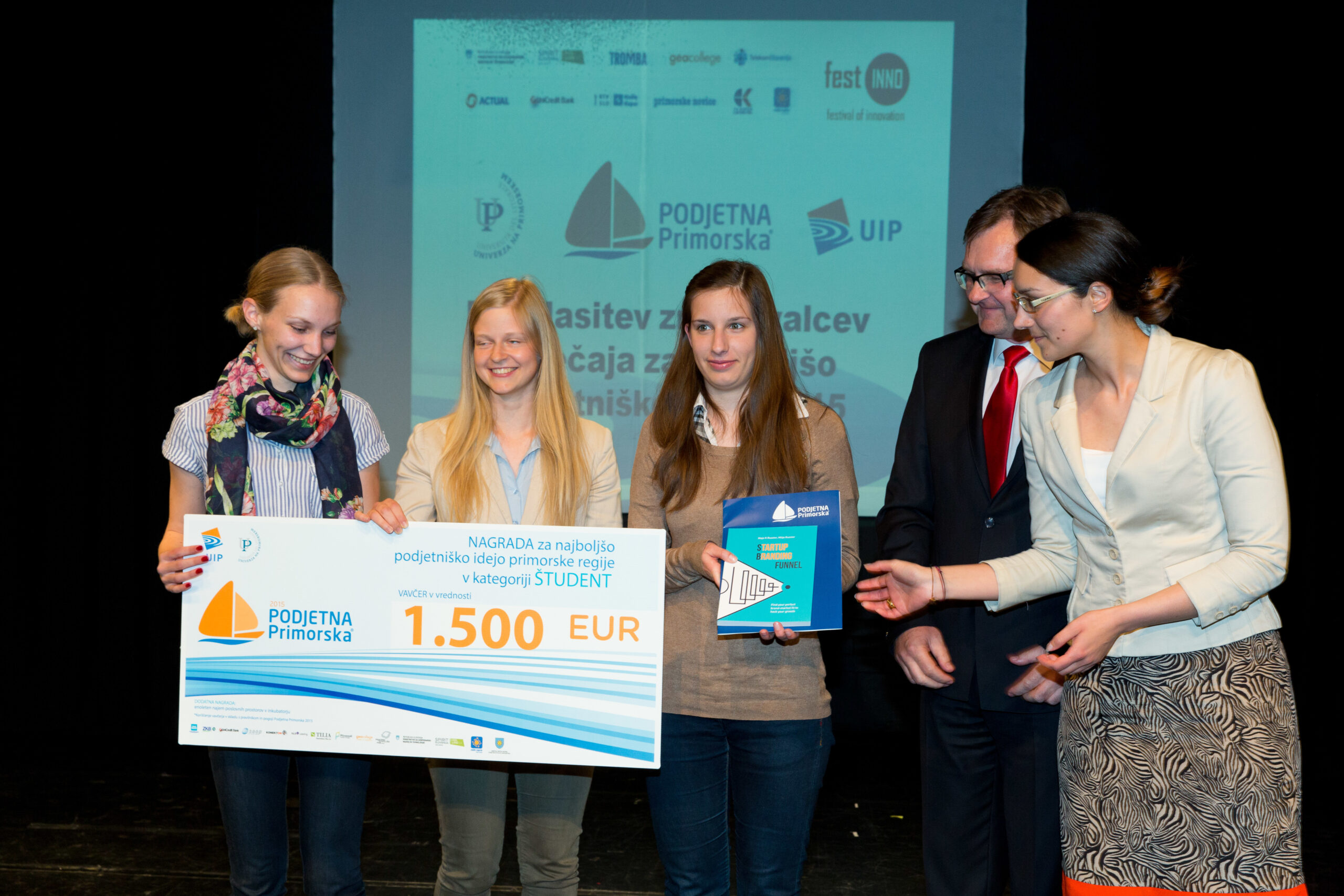 V četrtek, 21. maja 2015, se je s slavnostno podelitvijo nagrad v koprskem gledališču zaključil natečaj za najboljšo poslovno idejo primorske regije Podjetna Primorska 2015. Natečaj je namenjen spodbujanju podjetniške miselnosti in ustanavljanju novih, tržno naravnanih podjetij ter spodbujanju pretoka znanja z univerze v gospodarstvo. Natečaj pripravlja Univerzitetni razvojni center in inkubator Primorske (UIP) v sodelovanju s partnerji (sporočilo za javnost UIP). Na letošnjem, že devetem natečaju, je strokovna komisija pregledala 23 poslovnih idej in v finale uvrstila 12 najbolj perspektivnih.