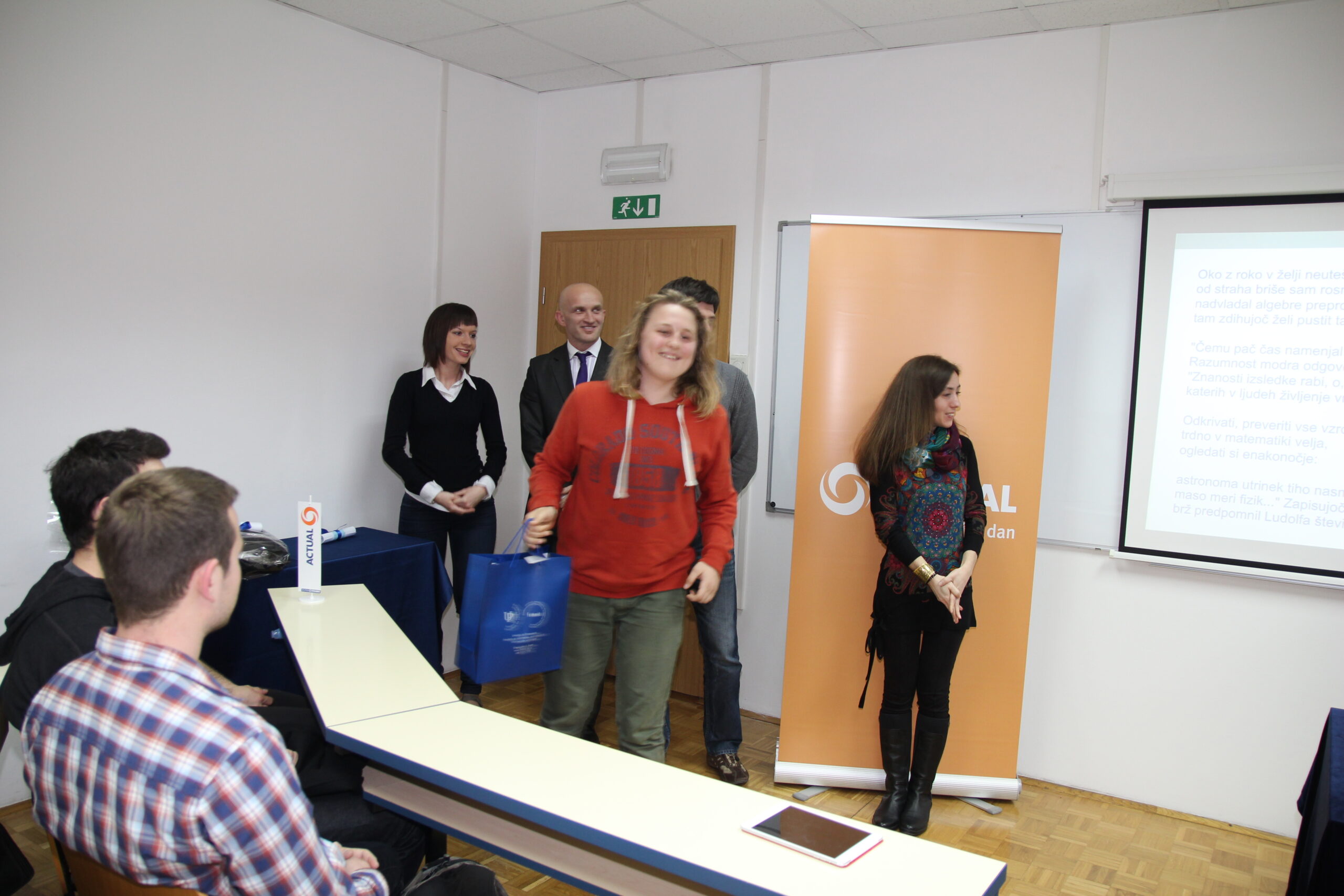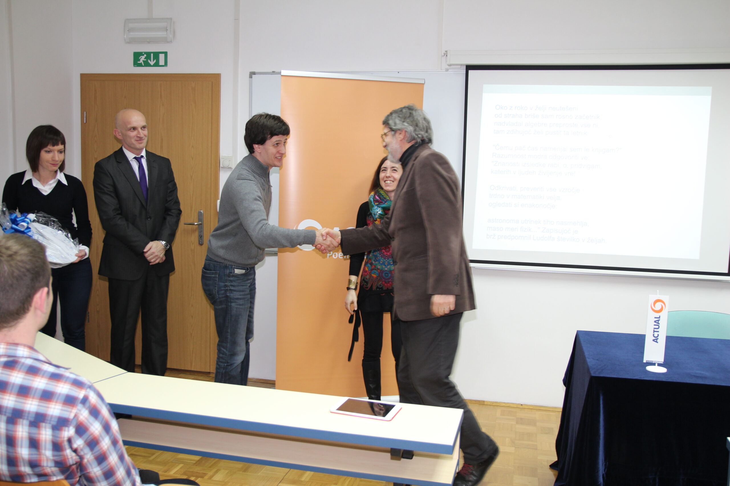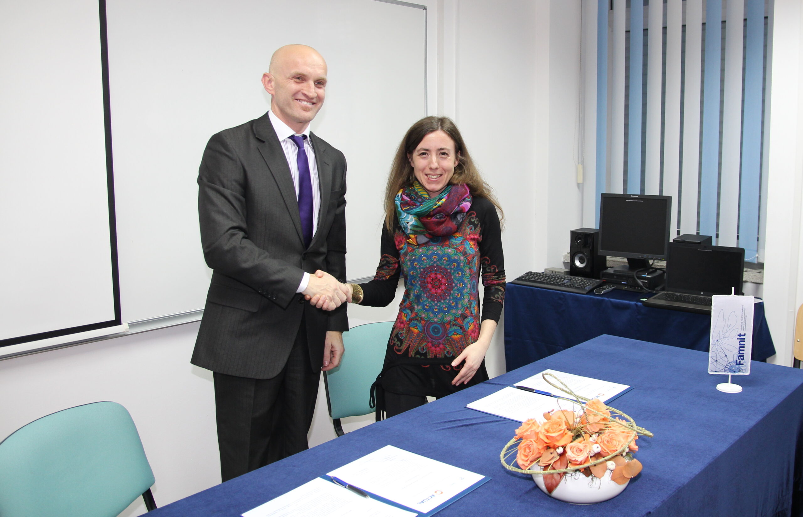 Danes, v petek, 14. marca je bil med Fakulteto za matematiko, naravoslovje in informacijske tehnologije Univerze na Primorskem (UP FAMNIT) in podjetjem Actual I.T., d.d. podpisan Sporazum o medsebojnem sodelovanju. Sporazum sta podpisala dekanja UP FAMNIT, izr. prof. dr. Klavdija Kutnar, in predsednik uprave podjetja Actual I.T., d.d., mag. Arman Koritnik, ter z opredelitvijo temeljnih področij sodelovanj nadgradila večletno povezanost inštitucij, ki je do sedaj temeljila predvsem na štipendiranju študentov računalništva in informatike.