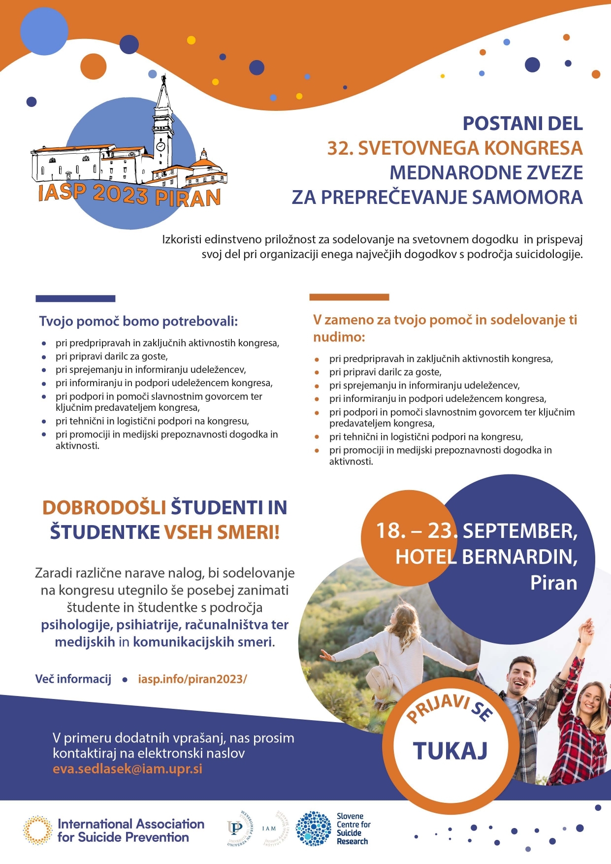 Postani prostovoljec in se pridruži 32. svetovnemu kongresu Mednarodnega združenja za preprečevanje samomora (IASP)