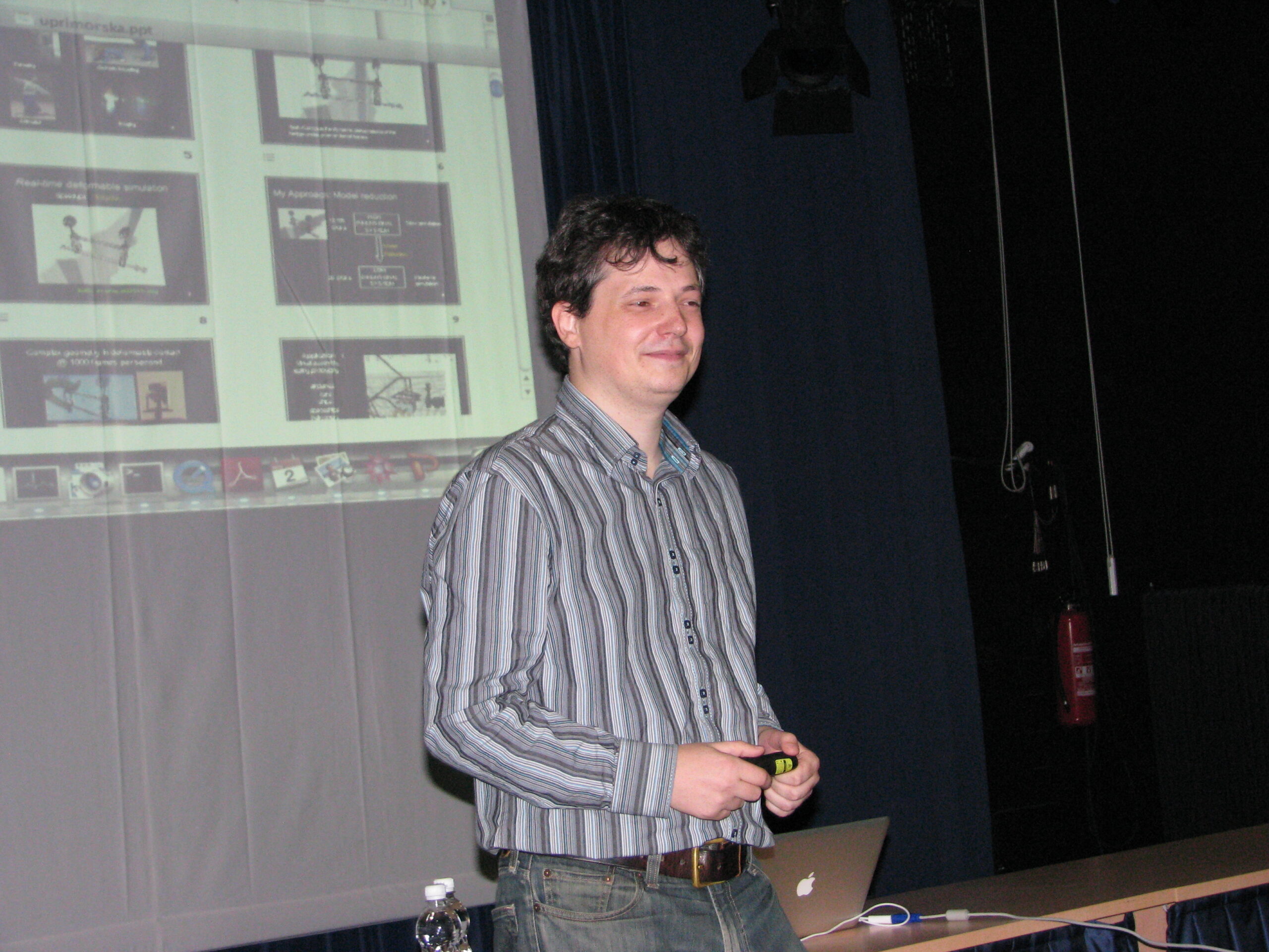 Uspehe mu prinašajo raziskave in rezultati na področjih interaktivne simulacije, numerične matematike, računalniške grafike, optimizacije in fizikalnega modeliranja. Poslušalcem je predstavil modele virtualne resničnosti, torej simulacij, ki bodo s popolno dodelavo na primer lahko pomagali kirurgom pri učenju ali pa strojnemu inženiringu prihranili čas za izdelavo prototipov. Posebno področje je t.i. haptica – kar je računalniška grafika za vid, je haptica za dotik. Gre torej za napravo, ki uporabniku omogoča tudi virtualni občutek, da se nečesa dotika.