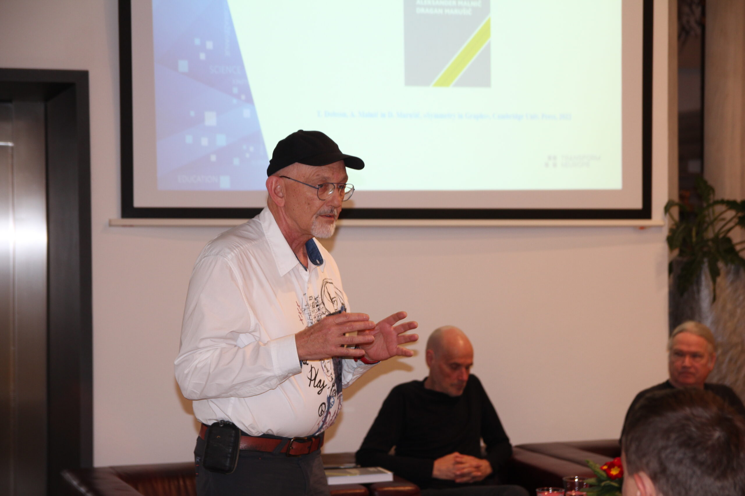 Letos smo na UP ta dan obeležili s predstavitvijo znanstvene monografije Symmetry in Graphs avtorjev Teda Dobsona, Aleksandra Malniča in Dragana Marušiča, prve knjige, ki je v celoti posvečena simetriji grafov. Izšla je v letu 2022 izšla založbi Cambridge University Press, v seriji Cambridge Studies in Advanced Mathematics – seriji knjig, katerih cilj je bralca uvesti v aktivno področje matematičnih raziskav. Poleg tega, da so obravnavane teme primerne za podiplomske študente, so uporabne tudi za strokovnjake iz drugih vej matematike, ki iščejo dostop do raziskovalnih tem.