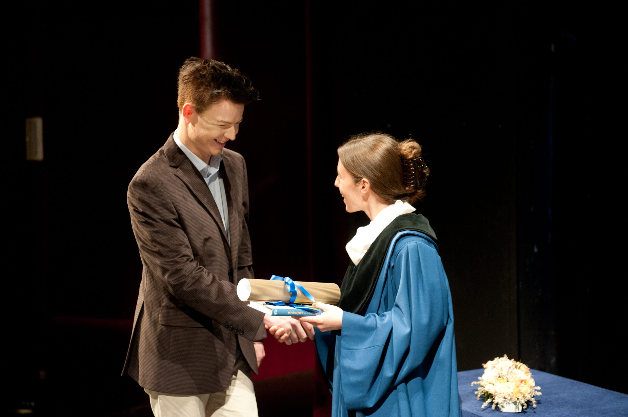 Miha Šaberl, prvi diplomant Bioinformatike, je na letošnji podelitvi diplom UP FAMNIT prejel tudi pohvalo za odlične študijske dosežke in aktivno sodelovanje pri promociji študijskega programa.