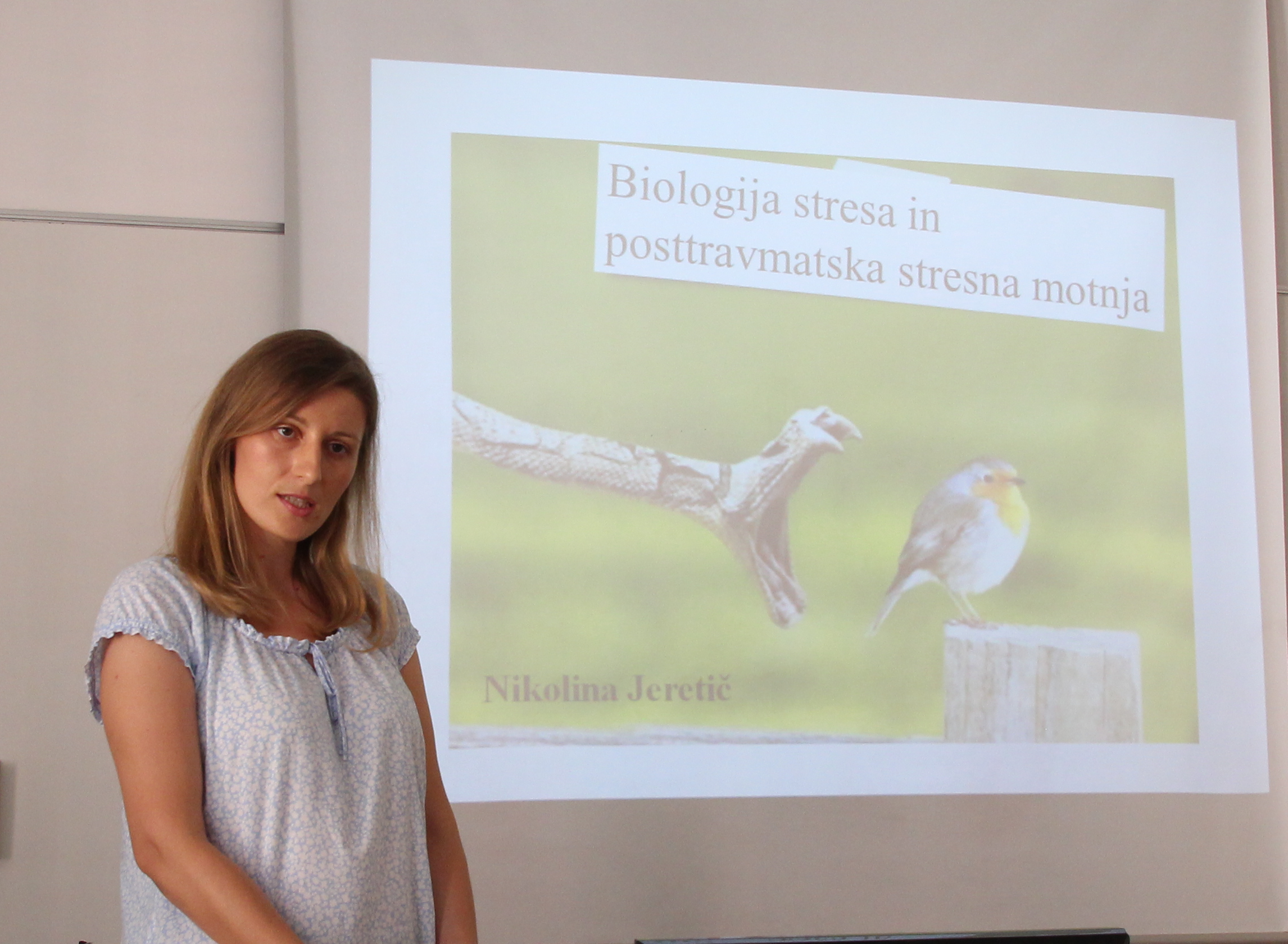 Nikolina Jeretič, diplomantka Biopsihologije, na predstavitvi zaključne naloge.