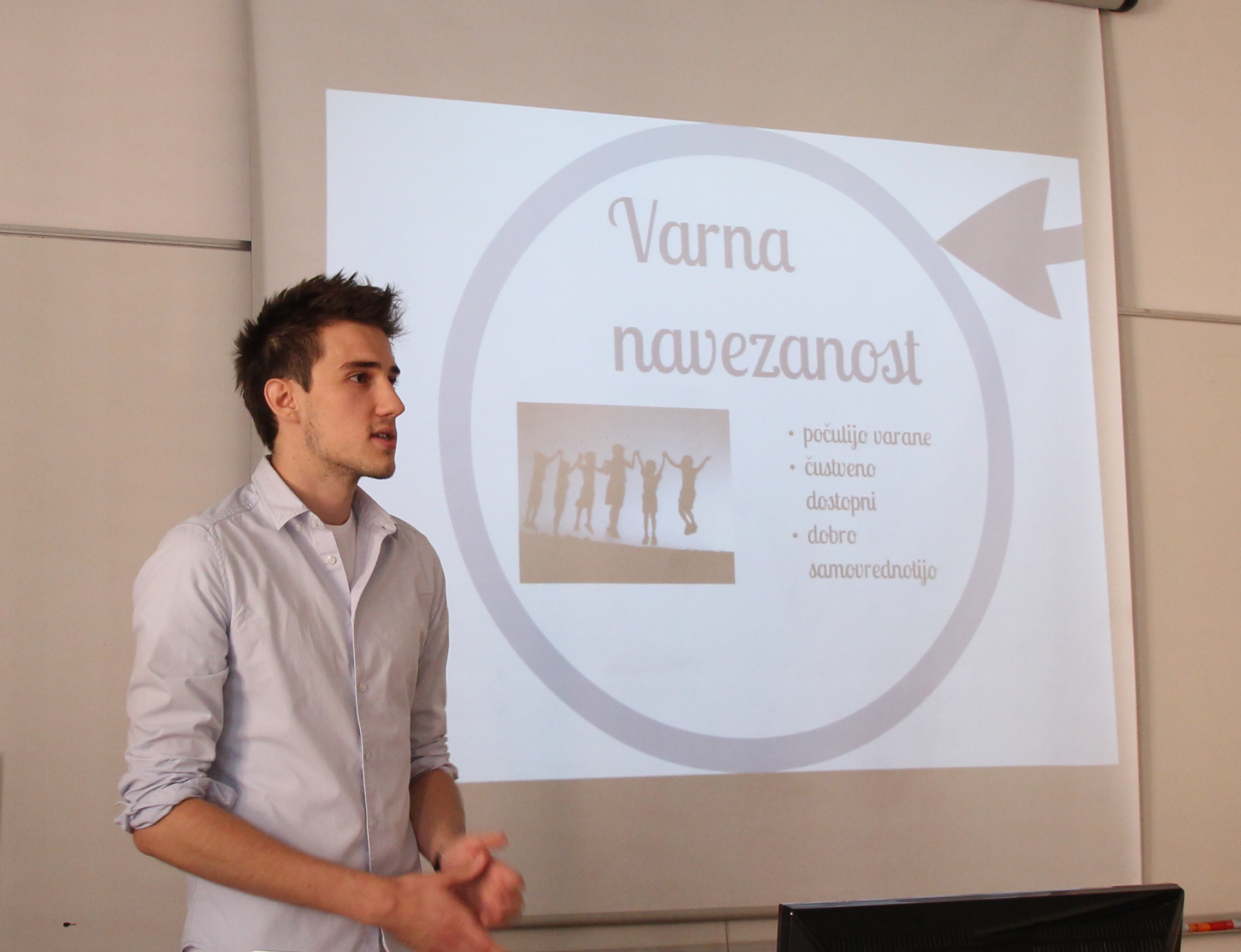 Tin Šenija, diplomant Biopsihologije, na predstavitvi zaključne naloge.