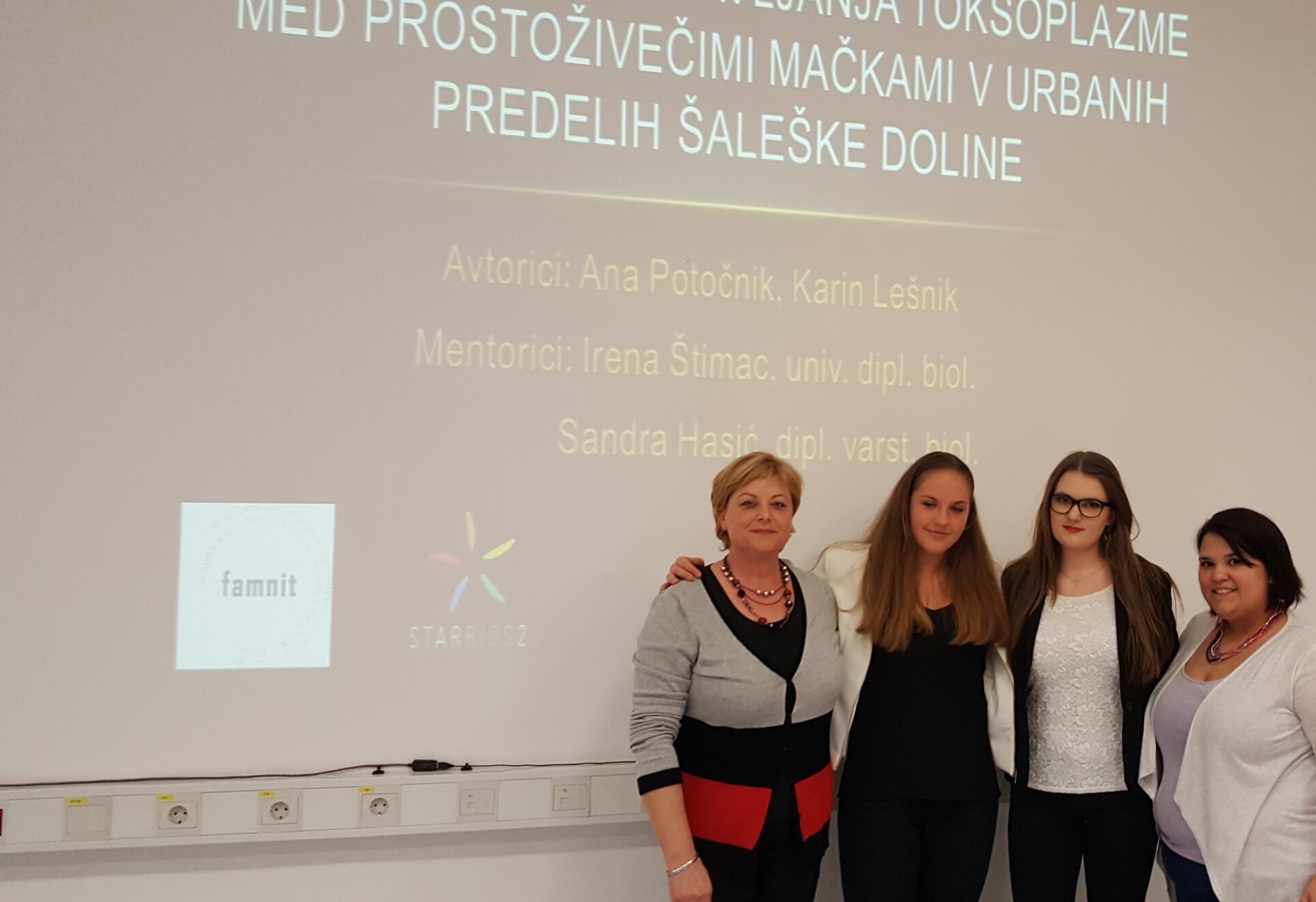 Nalogo z naslovom Prvi poskusi ugotavljanja toksoplazme pri prostoživečih mačkah v urbanih predelih Šaleške doline sta dijakinji opravili v laboratorijih Univerzitetnega kampusa Livade pod pokroviteljstvom mednarodnega projekta STARBIOS2 – Enhancing Responsible Biosciences, ki ga financira Evropska komisija iz okvirnega programa Evropske Unije za raziskave in inovacije Obzorje 2020.
