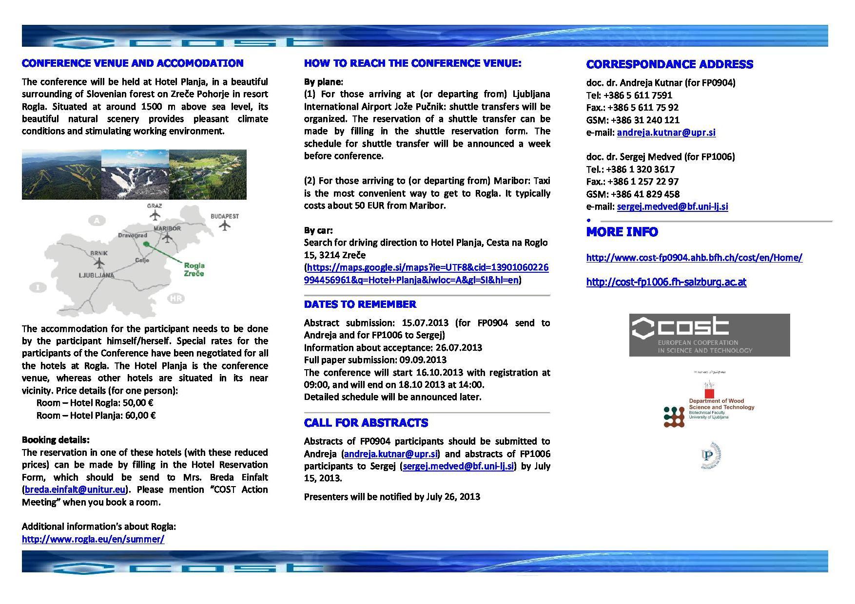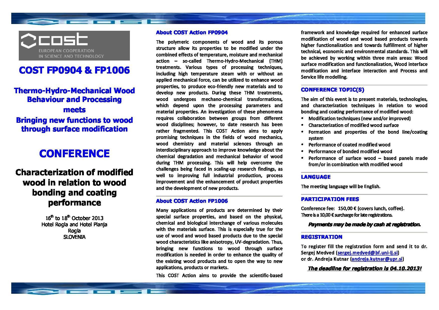 Mednarodna konferenca Joint Conference FP0904 and FP1006: “Characterization of modified wood in relation to wood bonding and coating performance”