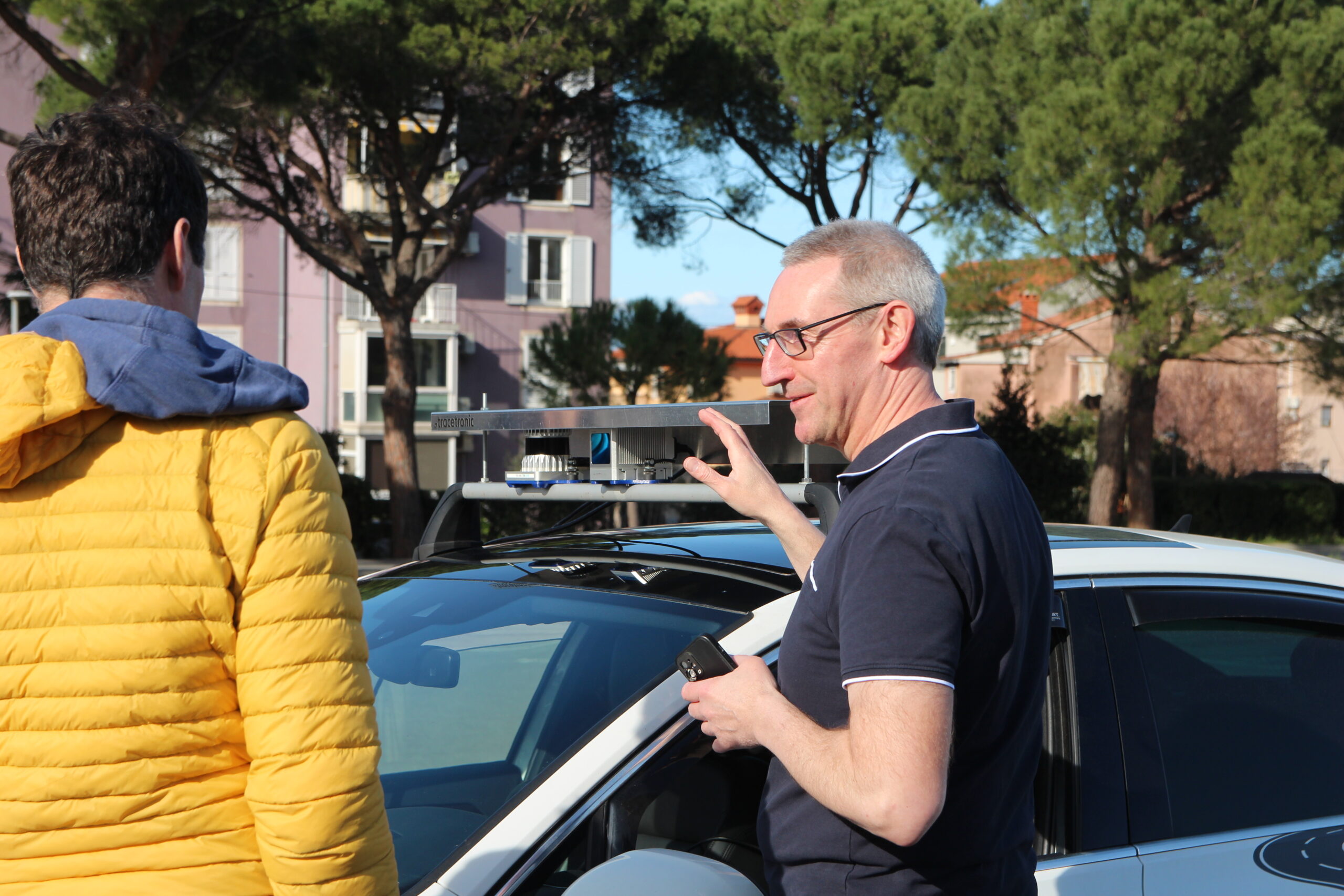 Toralf Trautmann, fizik in profesor na Univerzi za uporabne znanosti v Dresdnu (HTWD), je 14. marca 2024 v Izoli na parkirišču pred objektom Livade 1.0 predstavil simulacijo avtonomne vožnje ter novosti na področju avtomobilske programske opreme.