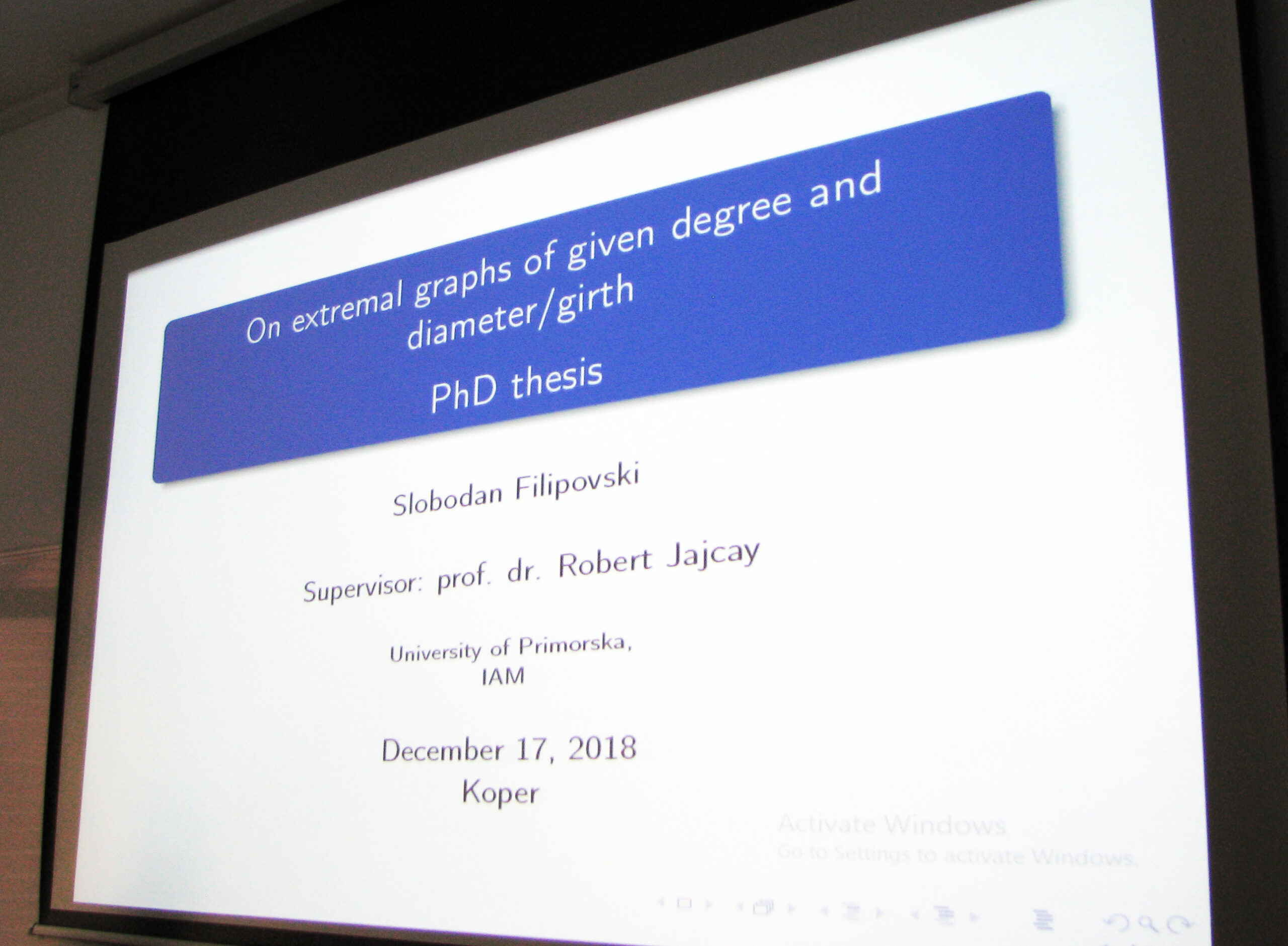 V ponedeljek, 17. decembra 2018, je mladi raziskovalec Slobodan Filipovski uspešno zaključil doktorski študij Matematičnih znanosti.