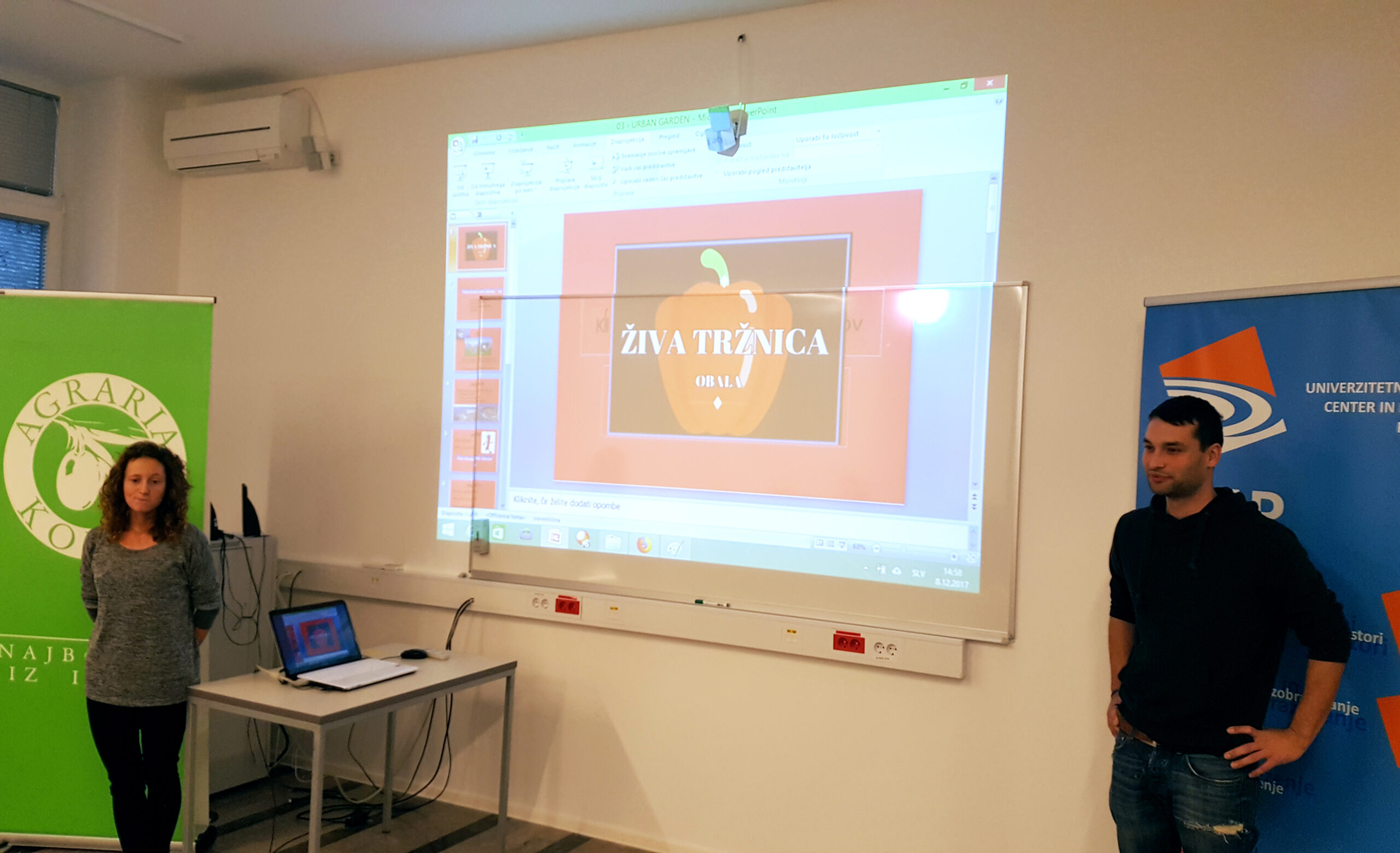 V začetku decembra so se študenti in diplomanti udeležili še dvodnevne delavnice, na kateri so predstavniki kmetijskega sektorja predstavili nove pristope v tehnologiji pridelave in predelave kmetijskih proizvodov ter različne trženjske pristope. Ker je bil cilj delavnice spodbujanje razvoja lastne kariere in spoznanje z realnim sektorjem, so identificirali tudi podjetniške ideje, zamisli in predloge rešitev pologov iz gospodarstva. Te sta predstavila Domen Jogan iz podjetja Vinja, trgovina in laboratorij za vinarstvo in kmetijstvo ter Jana Žveplan iz Kmetijske zadruge Agraria Koper. Prvi je predstavil projekt, ki je usmerjen v iskanje rešitev na področju alternativne rabe t. i. odpadnih surovin pri pridelavi grozdja in vina, drugi projekt pa je bil osredotočen na urbano kmetovanje, ki vse bolj uveljavlja tudi v slovenskih mestih.