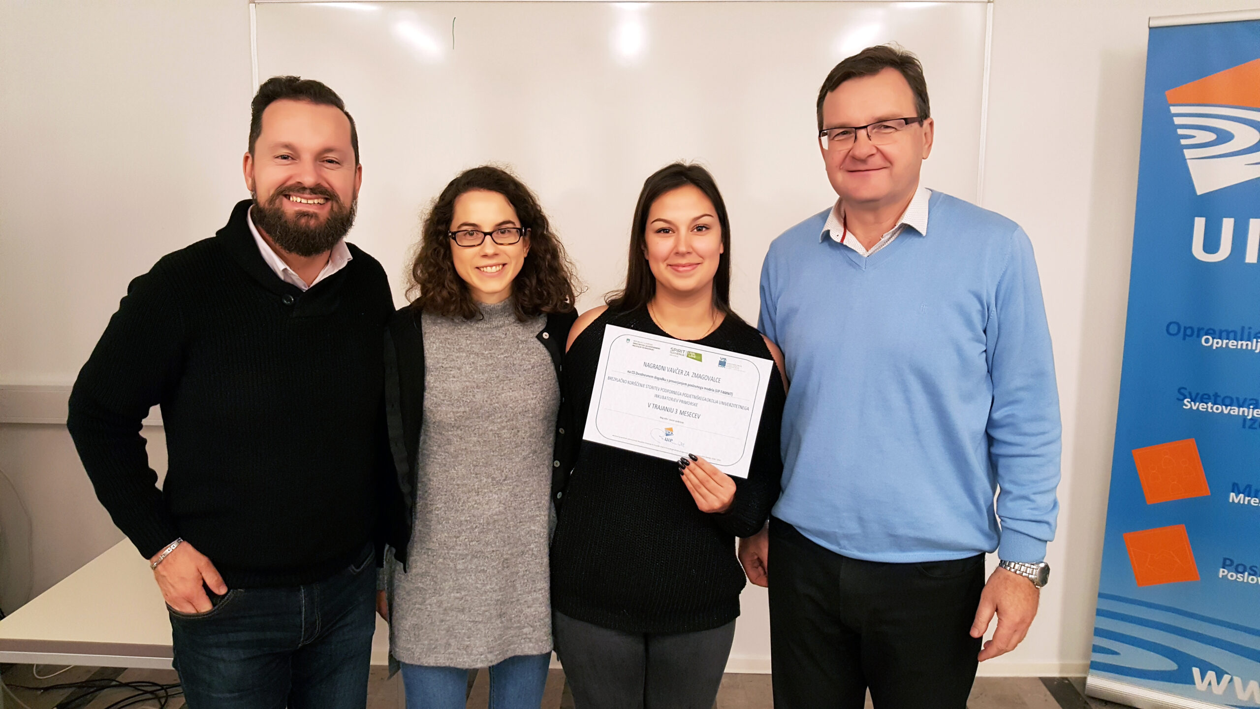 Zmagali sta Monika Kršič (dodiplomski študijski program Sredozemsko kmetijstvo) in Nika Tomažič (dodiplomski študijski program Biodiverziteta), ki sta razvili idejo GRONČKOV, biorazgradljivih cvetličnih lončkov iz stisnjenih tropin (na fotografiji).