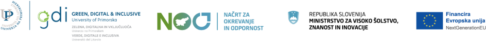 The project is co-financed by the Republic of Slovenia, the Ministry of Higher Education, Science and Innovation and the European Union – NextGenerationEU. The project is implemented in accordance with the Recovery and Resilience Plan (RRP) under the development area Smart, Sustainable and Inclusive Growth, component Strengthening competencies, in particular digital competencies and those required by the new professions and the green transition (C3 K5), for the investment measure Investment F. Implementation of pilot projects, the results of which will serve as a basis for the preparation of a roadmap for the reform of higher education for a green and resilient transition to a Society 5.0: project Pilot Projects for the Reform of Higher Education for a Green and Resilient Transition.