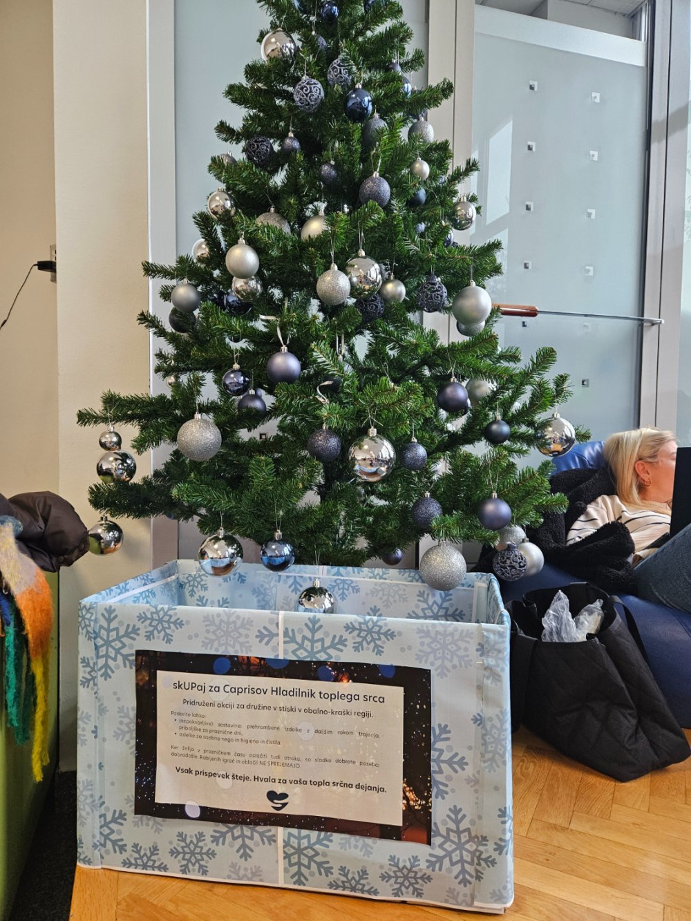 Škatli za zbiranje dobrin sta nameščeni v Avli Fakultete za matematiko, naravoslovje in informacijske tehnologije (UP FAMNIT), kjer jima družbo dela praznično okrašena smrekica.