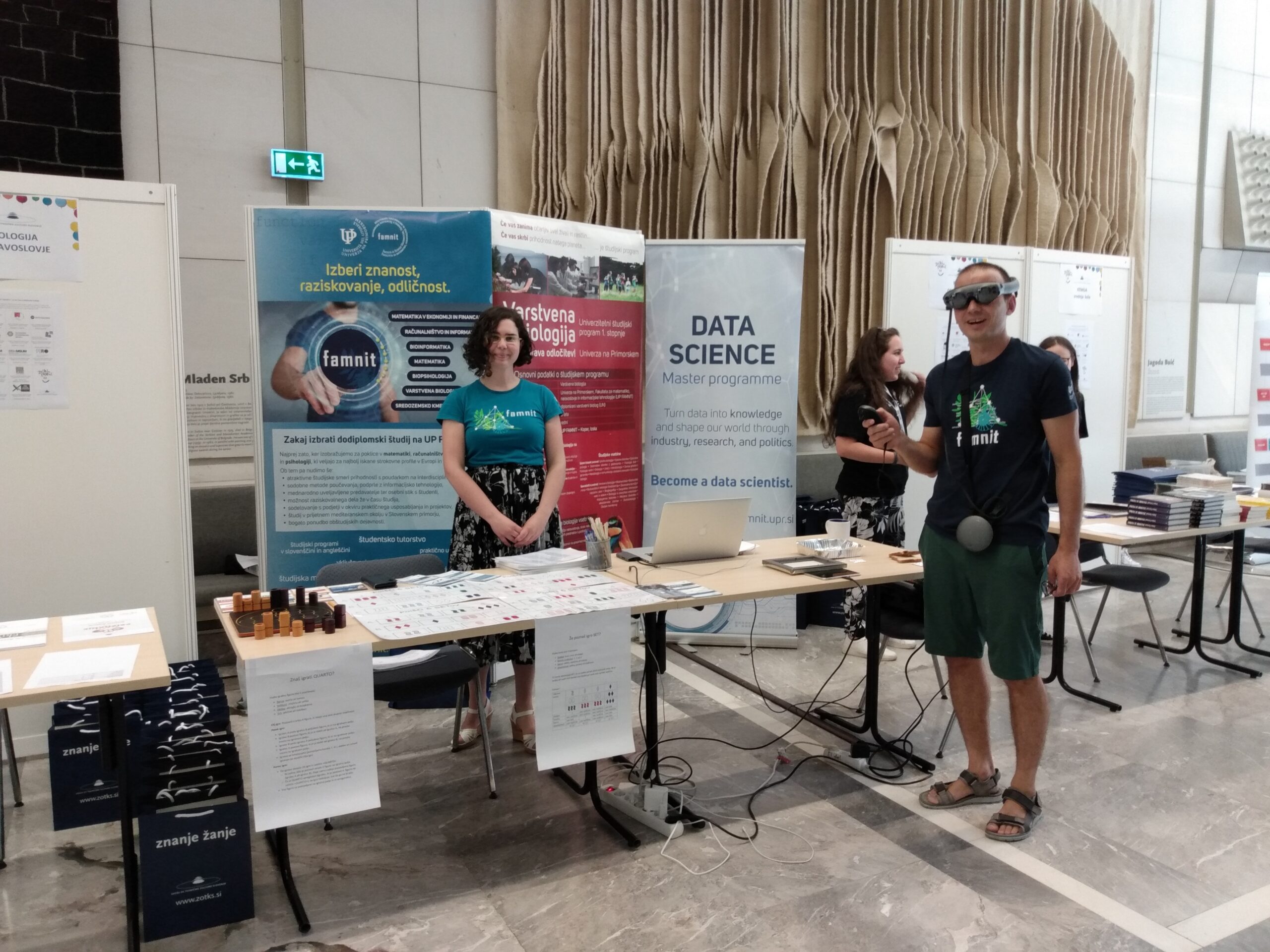 Tradicionalno je sodelovala tudi UP FAMNIT, z zanimivimi matematičnimi miselnimi in logičnimi igrami ter predstavitvijo uporabe VR očal (tehnologija ustvarjanja virtualnih in dopolnjenih svetov) pa so nas zastopali Doc. dr. Nina Chiarelli in Dr. Nastja Cepak z Oddelka za matematiko UP FAMNIT ter Doc. dr. Klen Čopič Pucihar z Oddelka za informacijske znanosti in tehnologije UP FAMNIT. Na aleji so se predstavile tehniške, naravoslovne in druge fakultete, nekaj podjetij in uspešnih projektov, ki so pri nas in po svetu predstavljali ZOTKS.