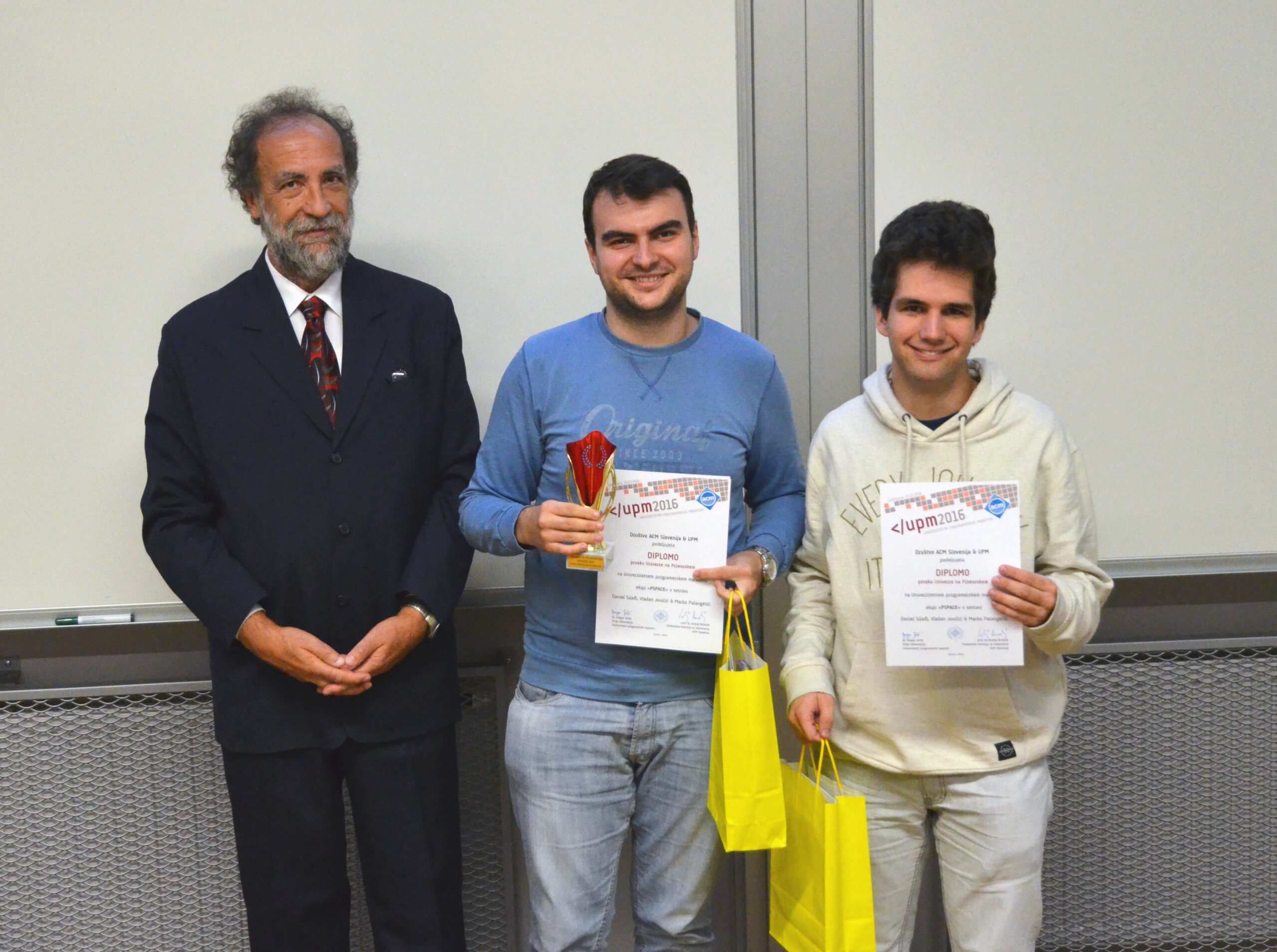 Na fotografiji: Marko Palangetić in Daniel Silađi z dekanom UL FRI prof. dr. Bojanom Orlom.