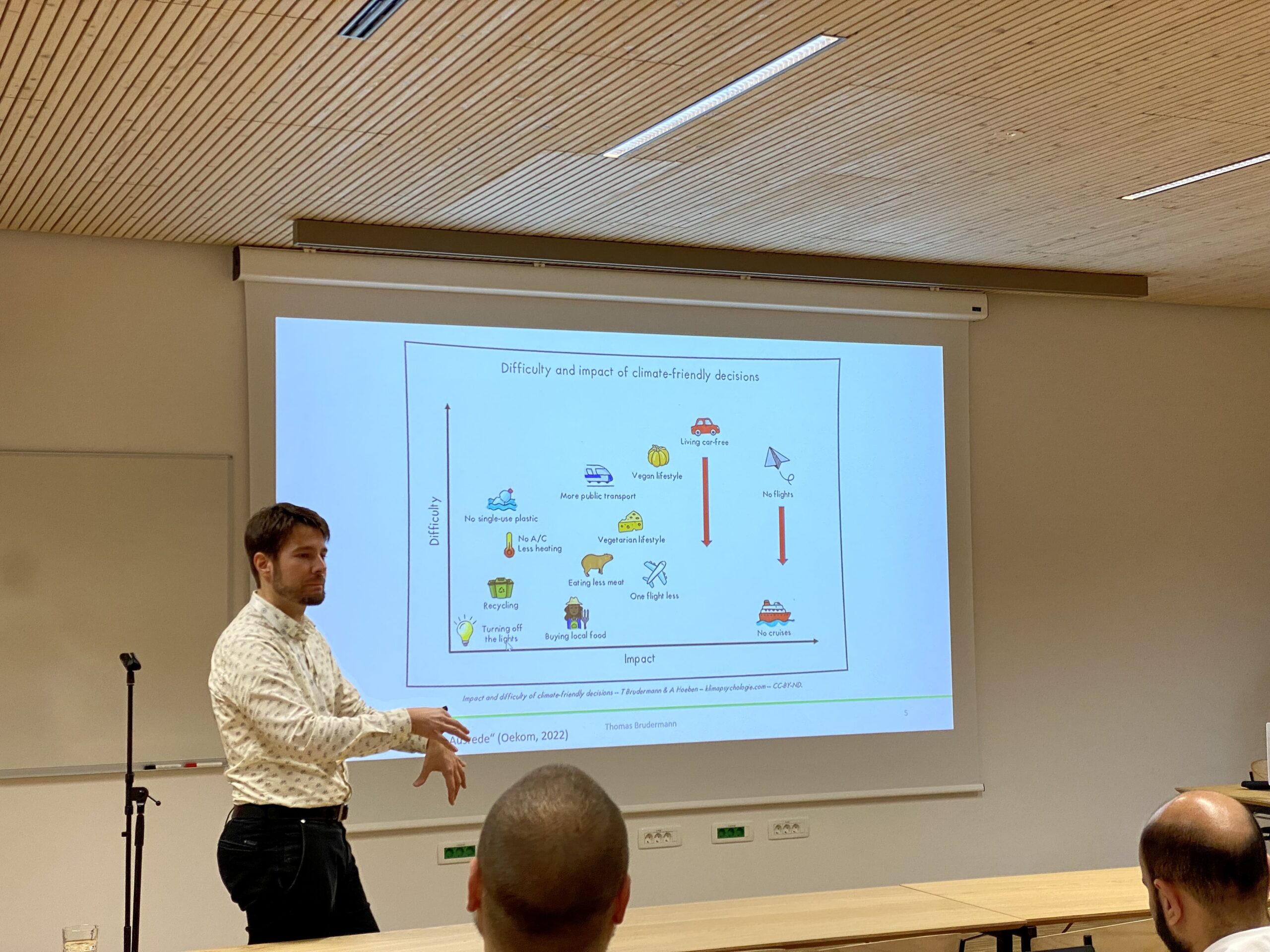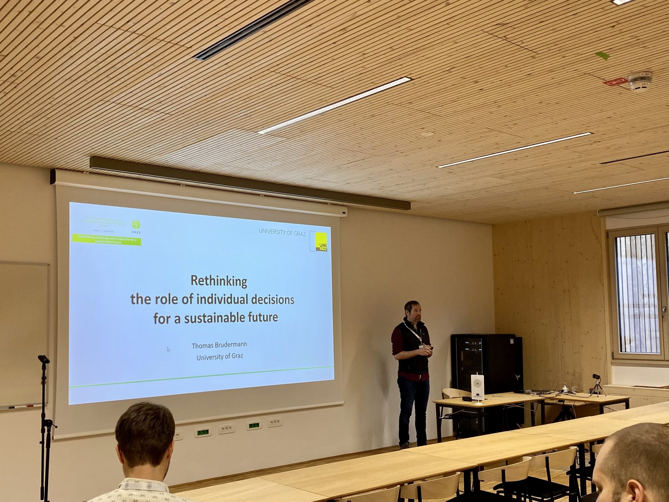 Osrednji nagovor udeležencev je imel izr. prof. dr. Thomas Brudermann, ki je profesor na Univerzi v Gradcu in doktor znanosti na področju psihologije. Spregovoril je o nujnem premisleku vloge individualnih odločitev za trajnostno prihodnost: »Ljudje še vedno nimamo dovolj znanja o podnebnih spremembah in vse prevečkrat imamo napačne predstave, precenimo naše sposobnosti in znanje.« Poudaril je tudi, da je za doseganje bolj trajnostne družbe, potrebno razumeti kontekst individualnih odločitev, ki omogočajo okolju prijazno ravnanje posameznikov.