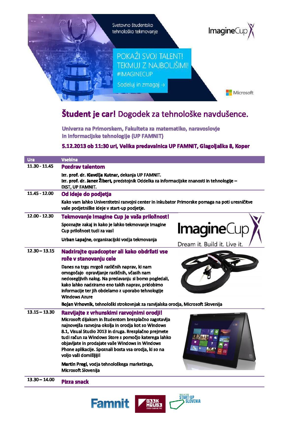 tekmovanje ImagineCup in razvojna orodja za izdelavo aplikacij.