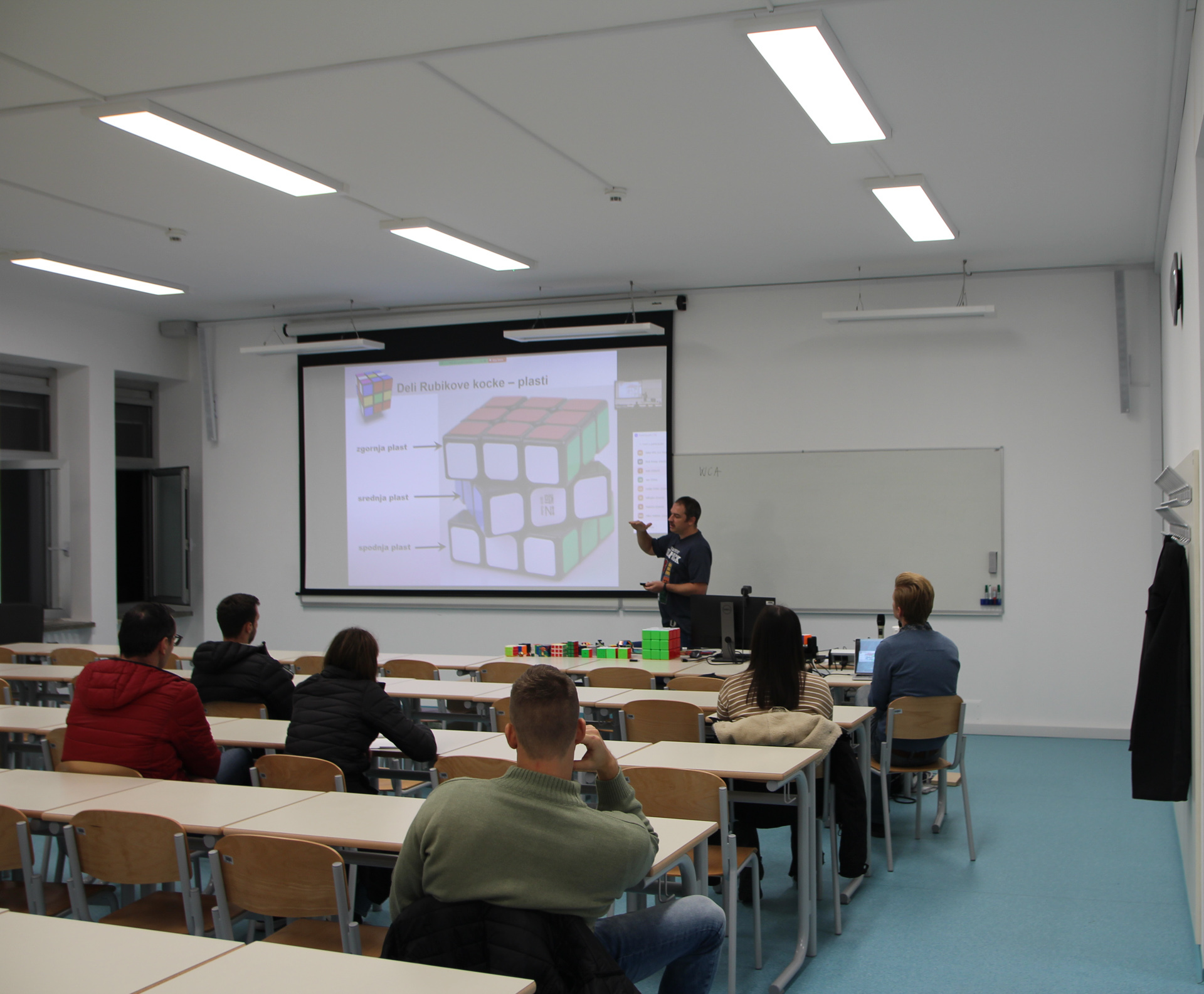 Drugo predavanje letošnjega cikla Famnitovih izletov v matematično vesolje z naslovom Rubikova kocka: od teorije grup, prek algoritmov do hitrostnega reševanja, je izvedel Dr. Branko Kavšek, docent na področju računalništva in informatike, član Oddelka za informacijske znanosti in tehnologije na UP FAMNIT in Laboratorija za umetno inteligenco na Institutu Jožef Stefan.