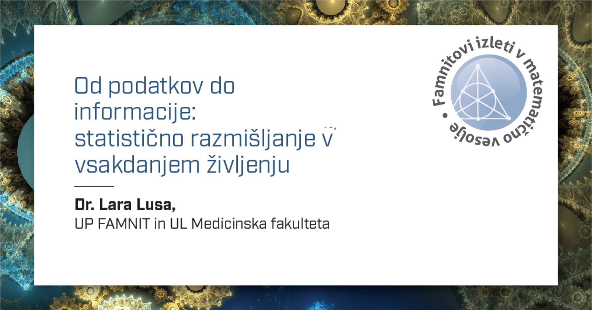 Naslednji dogodek bo v sredo, 19. januarja 2022, ob 18.00. Dr. Lara Lusa bo izvedla predavanje z naslovom Od podatkov do informacije: statistično razmišljanje v vsakdanjem življenju.