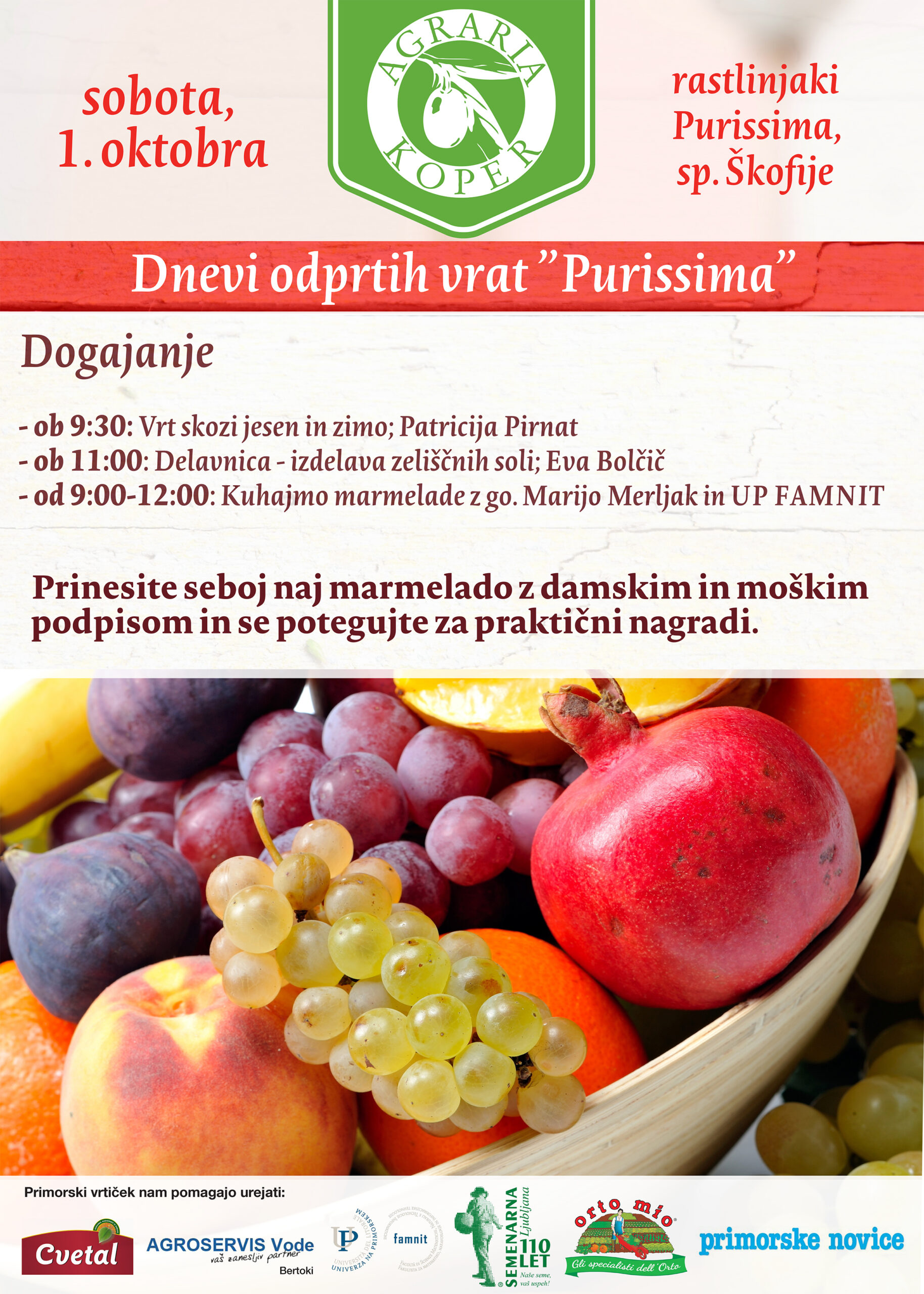 Kmetijska zadruga Agraria vabi na Dan odprtih vrat Purissime, ki bo v soboto, 1. oktobra 2016, od 9. ure dalje.