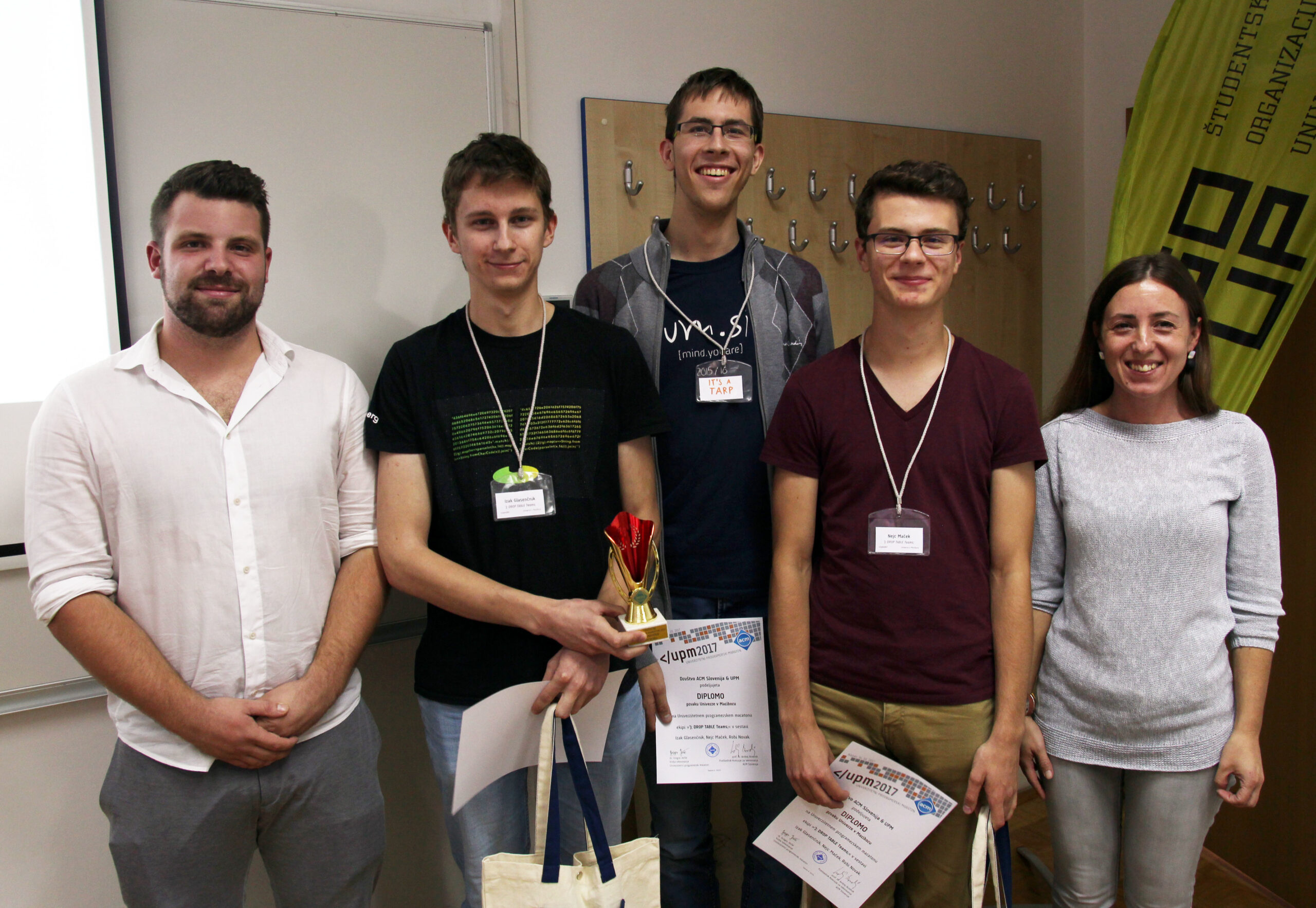 Prvaki Univerze v Mariboru: Izak Glasenčnik, Nejc Maček, Robi Novak (ekipa ‘); DROP TABLE Teams;)