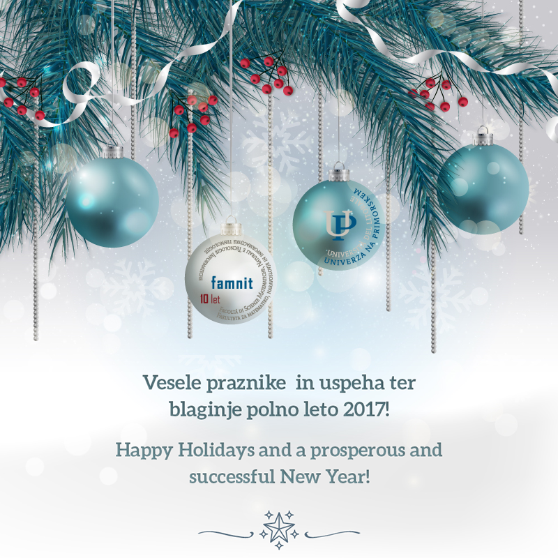 ☰ Meni Študij Dodiplomski študij Agronomija Bioinformatika Biopsihologija Inovacije v lesarstvu za trajnostni razvoj Matematika Matematika in računalništvo Matematika v ekonomiji in financah Računalništvo in informatika Varstvena biologija Magistrski študij Biopsihologija Matematične znanosti Matematika s finančnim inženiringom Podatkovna znanost Psihologija Računalništvo in informatika Trajnostno grajeno okolje Varstvo narave Doktorski študij Matematične znanosti Obnovljivi materiali za zdrava grajena okolja Računalništvo in informatika Suicidologija in duševno zdravje Varstvena biologija Računalništvo in informatika – skupaj s St Andrews University Študijski koledar Koordinatorji študija Tutorstvo Zaključek študija Mednarodno sodelovanje Erasmus+ za študente Razpisi Erasmus+ praksa Kombinirani intenzivni programi – KIP Incoming Exchange Students Erasmus+ za zaposlene Transform4Europe Štipendije in študij v tujini Študijska praksa v tujini CEEPUS Poletne šole Znanstvena srečanja in konference Gostujoči profesorji Raziskovanje Raziskovalna skupina Raziskovalni projekti in programi Infrastruktura Znanstvena srečanja in konference Mednarodne znanstvene revije Študentski projekti v sodelovanju z okoljem Seminarji O fakulteti Osebna izkaznica Na kratko o Famnitu Poslanstvo in vizija Organiziranost Vodstvo Seznam zaposlenih Oddelki Centri in laboratoriji Organi in komisije Kje se nahajamo Pravilniki in obrazci Skrb za kakovost Priznanja in nagrade Knjižnica Založništvo Predstavitev Ars Mathematica Contemporanea The Art of Discrete and Applied Mathematics Discrete Mathematical Chemistry Cenik storitev Programi dela, poročila o delu Katalog IJZ Varstvo osebnih podatkov Izjava o dostopnosti Delite z drugimi