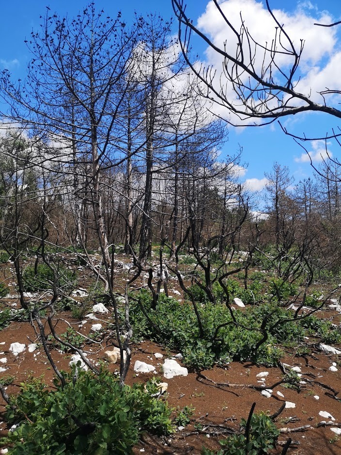 (na fotografijah: postopek označevanja, pogorišče na Cerju)