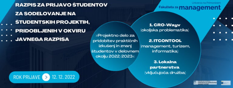 Razpis za prijavo študentov za sodelovanje na študentskih projektih v okviru javnega razpisa2 decembra, 2022