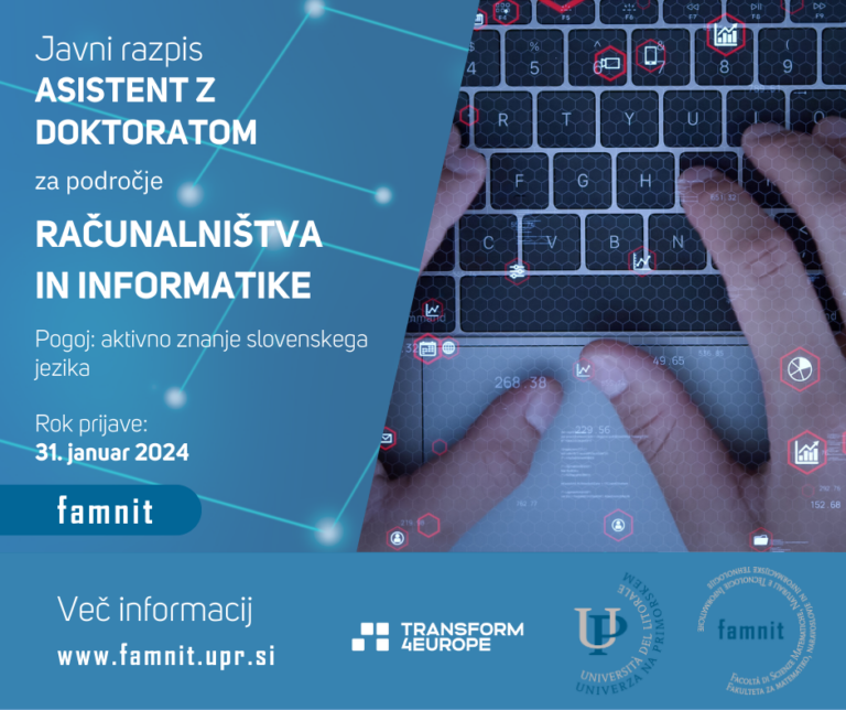 D010001 ASISTENT – ASISTENT Z DOKTORATOM ZA PODROČJE RAČUNALNIŠTVA IN INFORMATIKE – M/Ž5 januarja, 2024