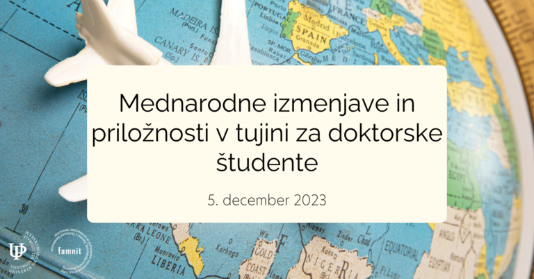 Zoom srečanje: Mednarodne izmenjave in priložnosti v tujini za doktorske študente // Zoom workshop: International exchanges and opportunities abroad for PhD students30 novembra, 2023