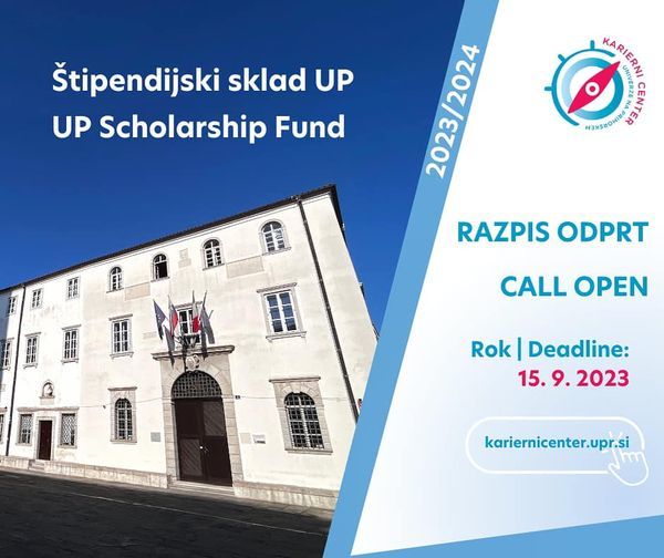 ŠTIPENDIJSKI SKLAD UP 2023/2024 – JAVNI POZIV ZA PRIDOBITEV ŠTIPENDIJE V ŠTUDIJSKEM LETU 2023/2024// The Scholarship Fund of the University of Primorska12 julija, 2023