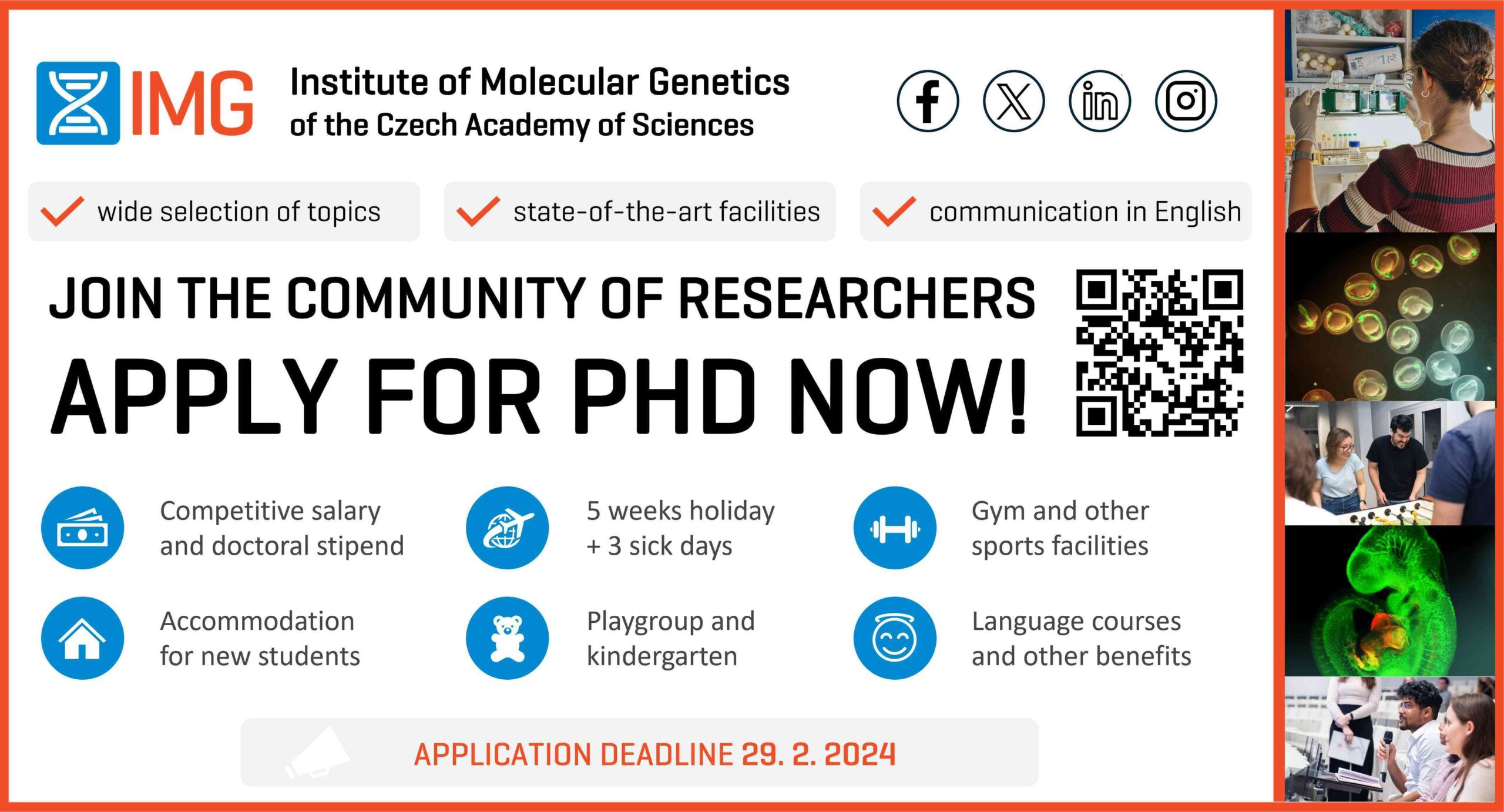 Inštitut za molekularno genetiko na Akademiji za znanost na Češkem vabi vse zainteresirane, da se prijavijo na odprto PhD pozicijo.
