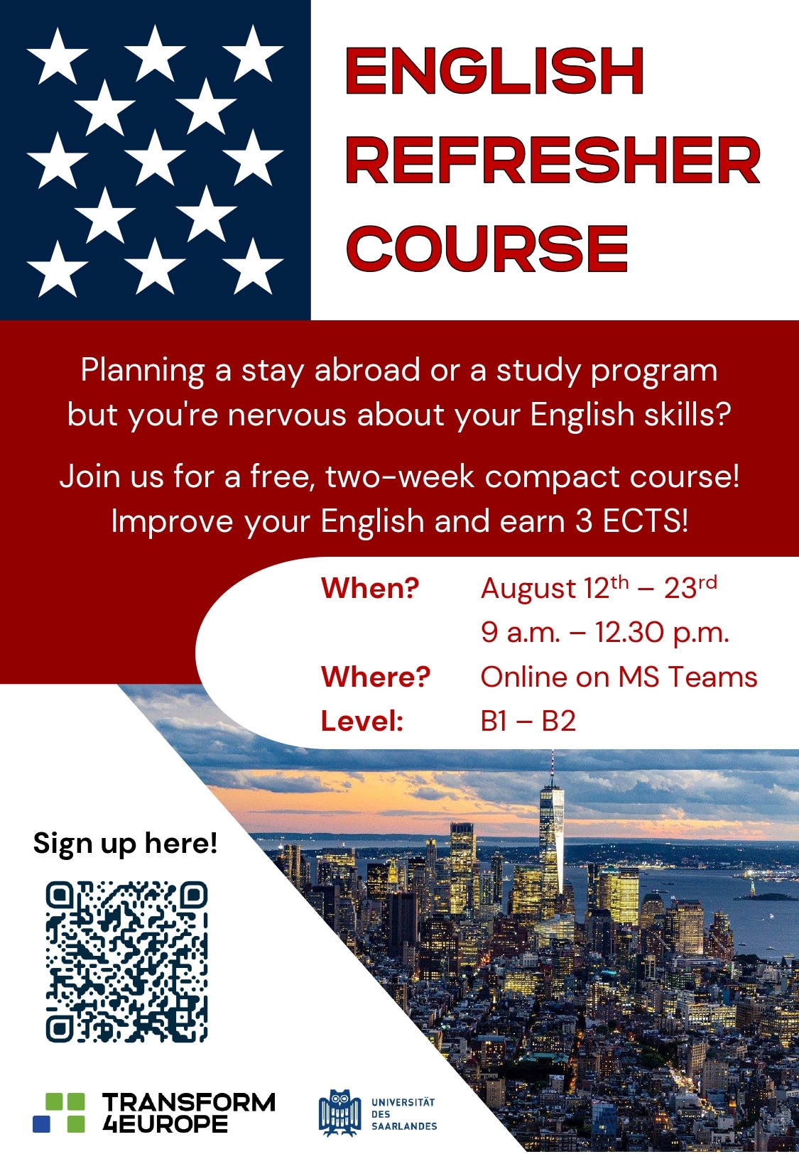 Univerza Saarland ponuja dva brezplačna intenzivna jezikovna tečaja: s francoščine in angleščine// Saarland University is offering two intensive language courses free of charge: one in French and one in English